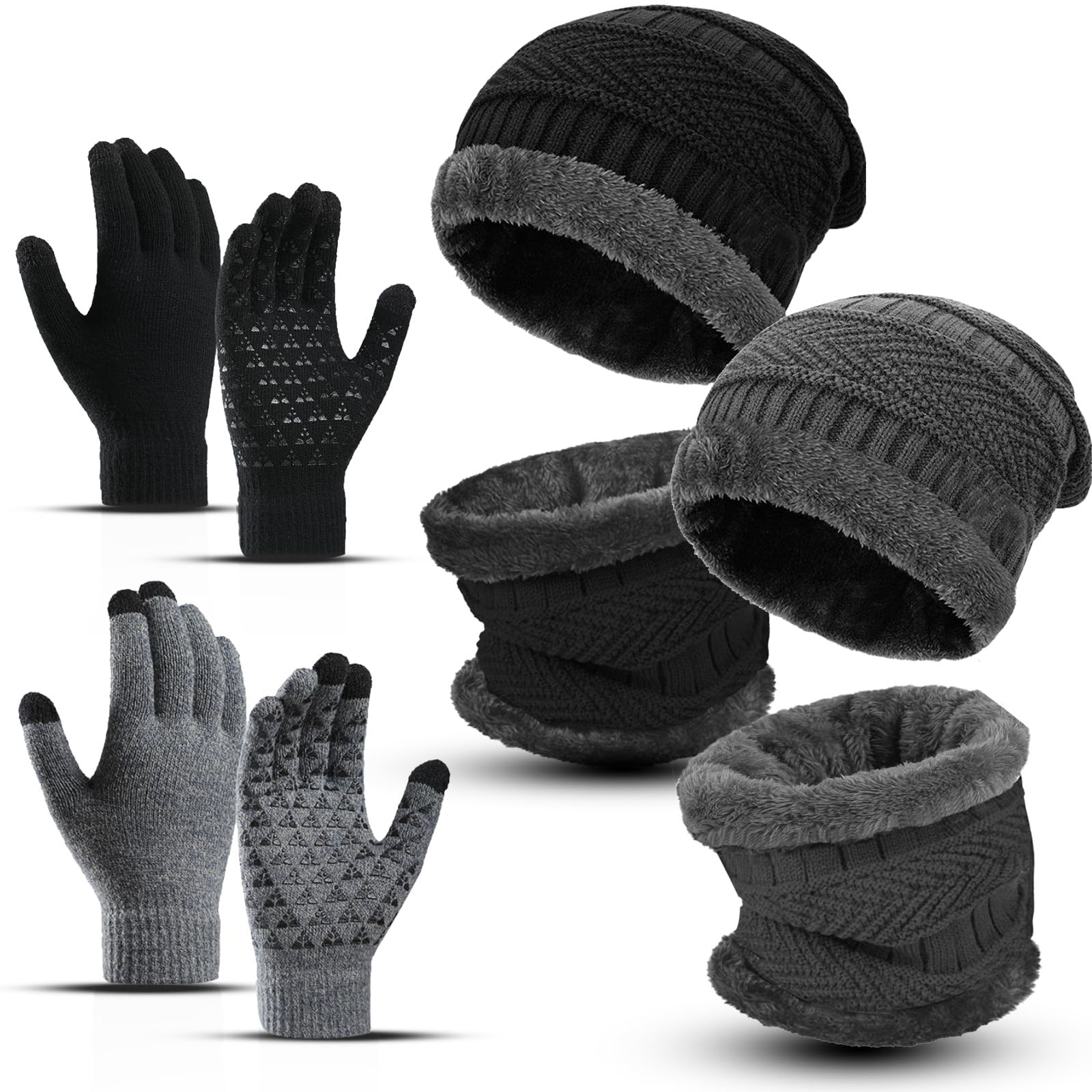 6 Pieces Winter Beanie Hat Scarf Gloves Set for Men Women,Knitted Skull Cap Winter Hat Touchscreen Gloves Neck Warmer for Cold Weather