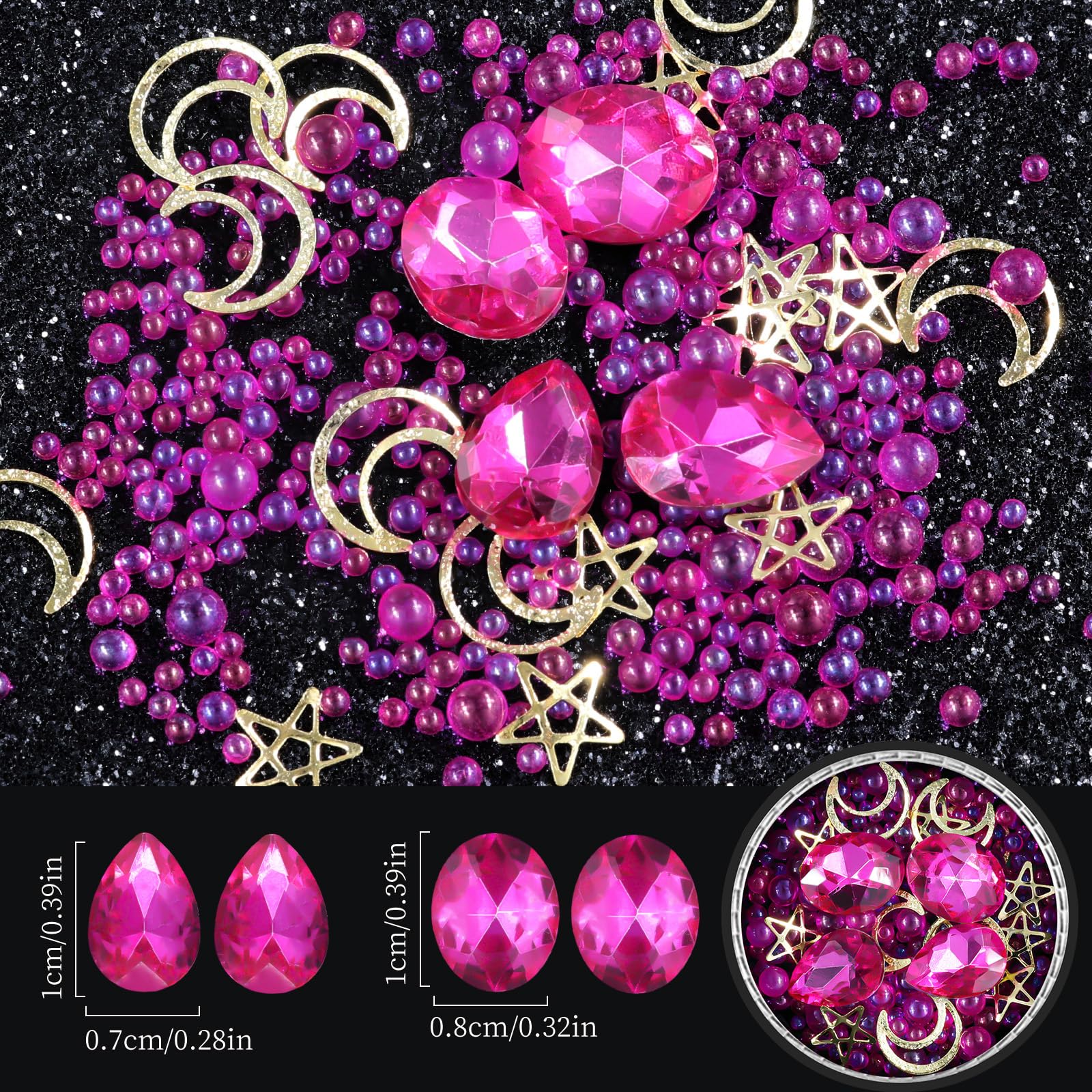 6 Wheels Mixed Sparkle Nail Art Rhinestones Diamonds Crystals Butterfly Beads Artificial Pearls Gold Silver Nail Studs Gems Metal Hollow Rivets Charms (Hot Pink)