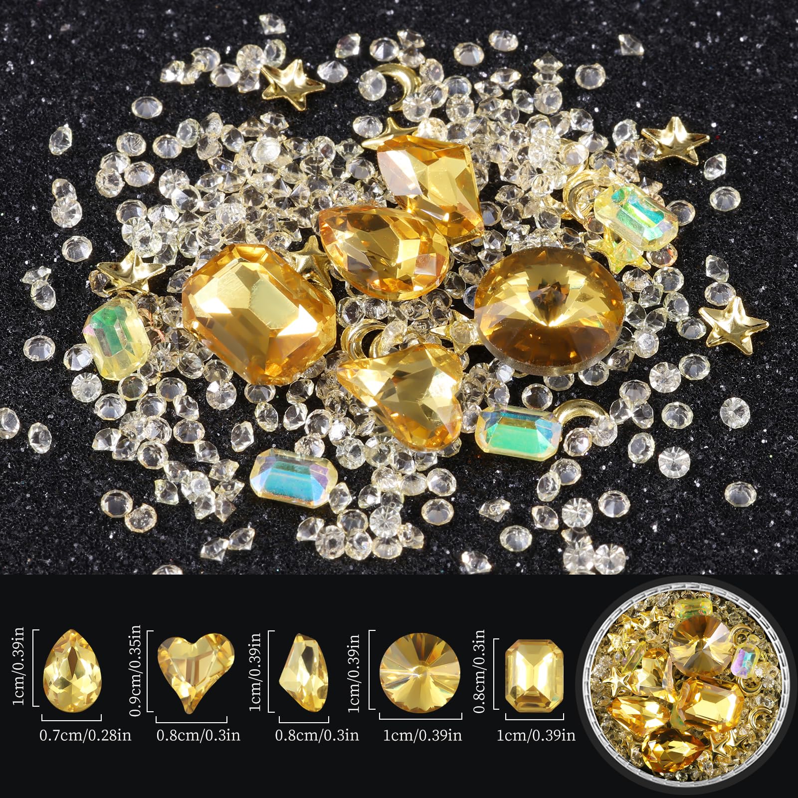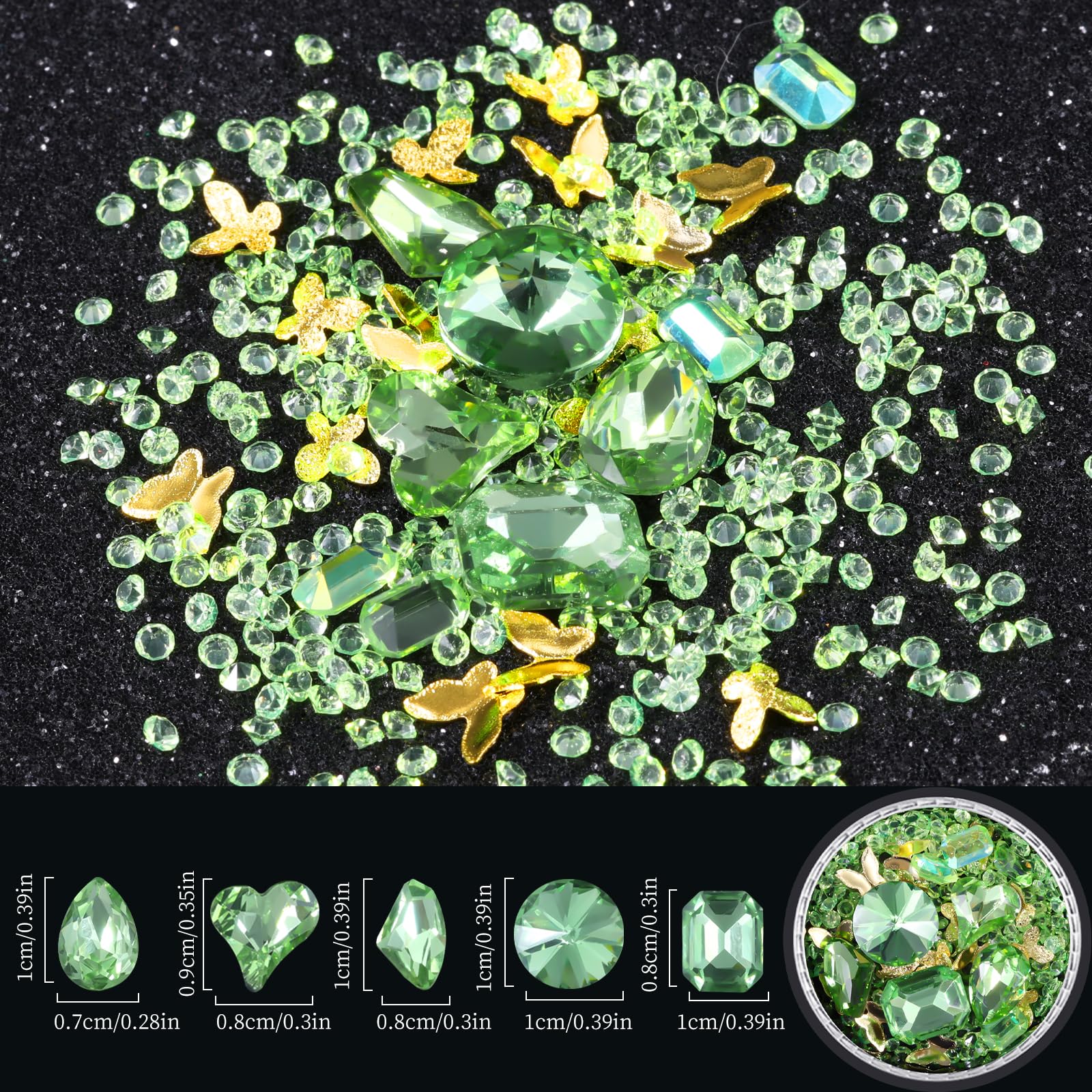 - Wide usages: Mixed sizes and colors of these gems will satisfy your different needs of nail art design. Mainly serve as nail art decoration, also can be applied to phone case, greeting card crafting, shoes, guitar, eye makeup, body art and so on.