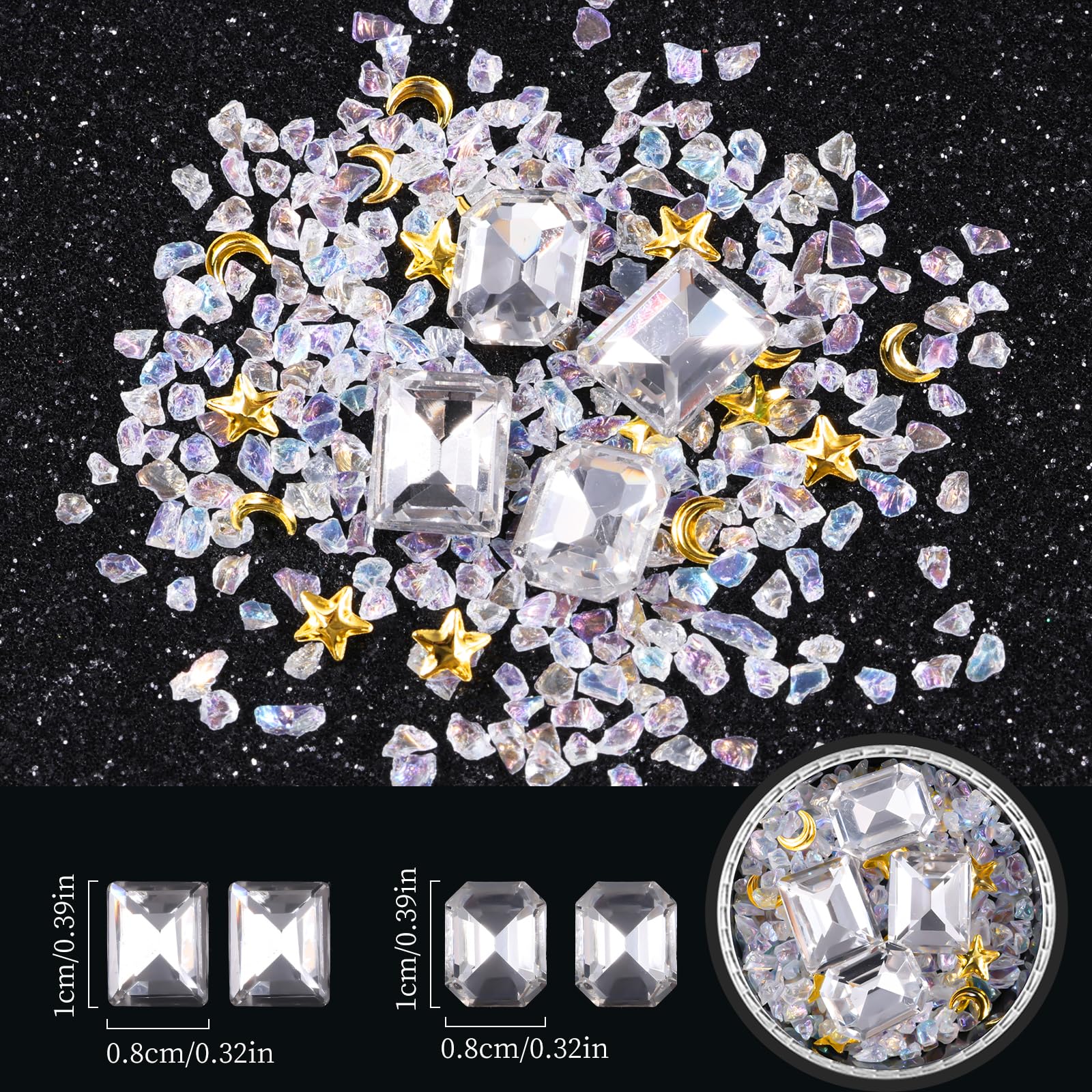 - Wide usages: Mixed sizes and colors of these gems will satisfy your different needs of nail art design. Mainly serve as nail art decoration, also can be applied to phone case, greeting card crafting, shoes, guitar, eye makeup, body art and so on.