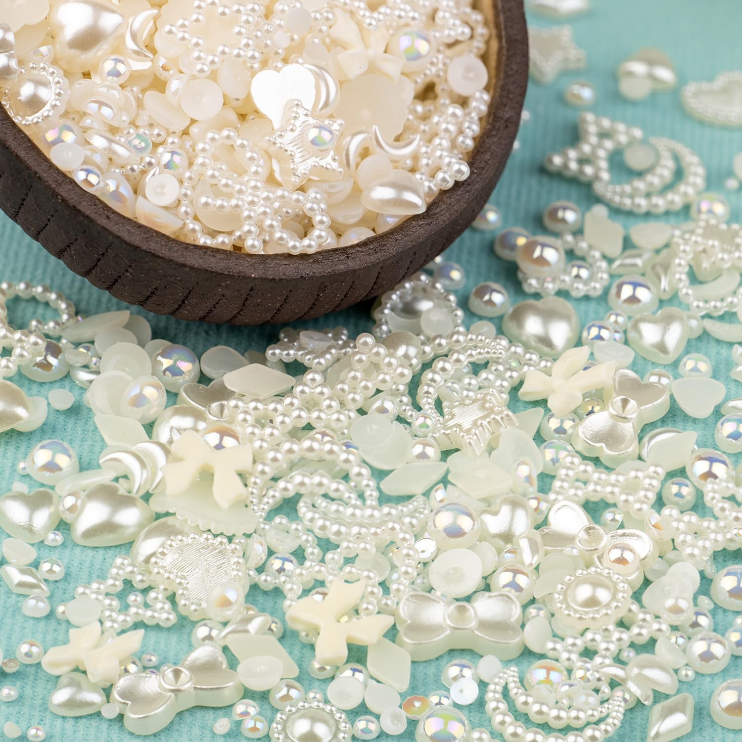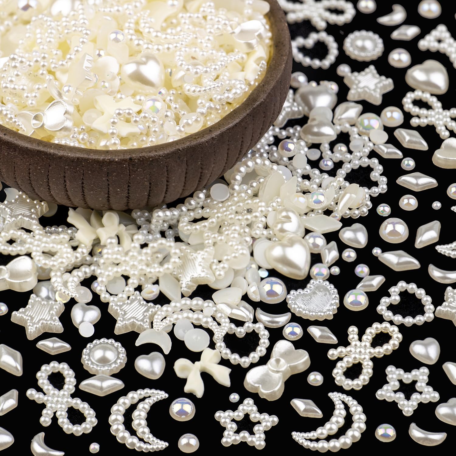 - 💎Great Amount&Muti-Size: Different shapes of nail art pearl chams are in different sizes. The flat back pearl beads are in sizes from 2mm-6mm. This set contains about 600pcs of nail art pearls and charms. The multiple shapes and size range of charms and pearls can fit different nail sizes and different nail designs. It is quite enough to make your nail art and crafts.