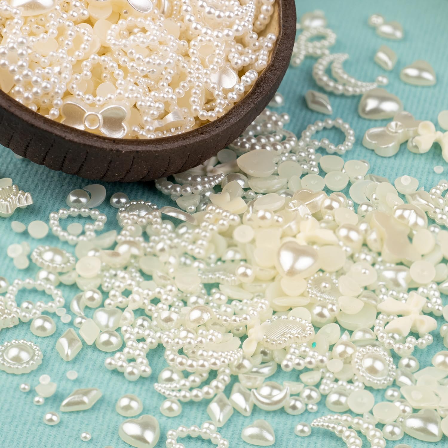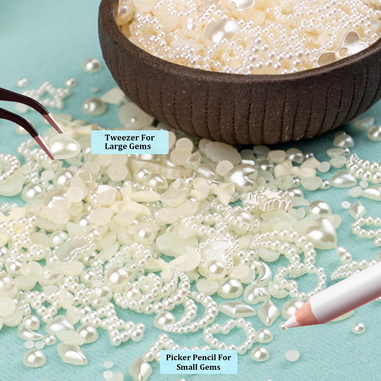 - 💎What You Will Receive: You will get a pack of Beige multi styles 3D nail art charms and flatback half round Beige pearls, a pc of tweezer and a pc of pickup pencil.