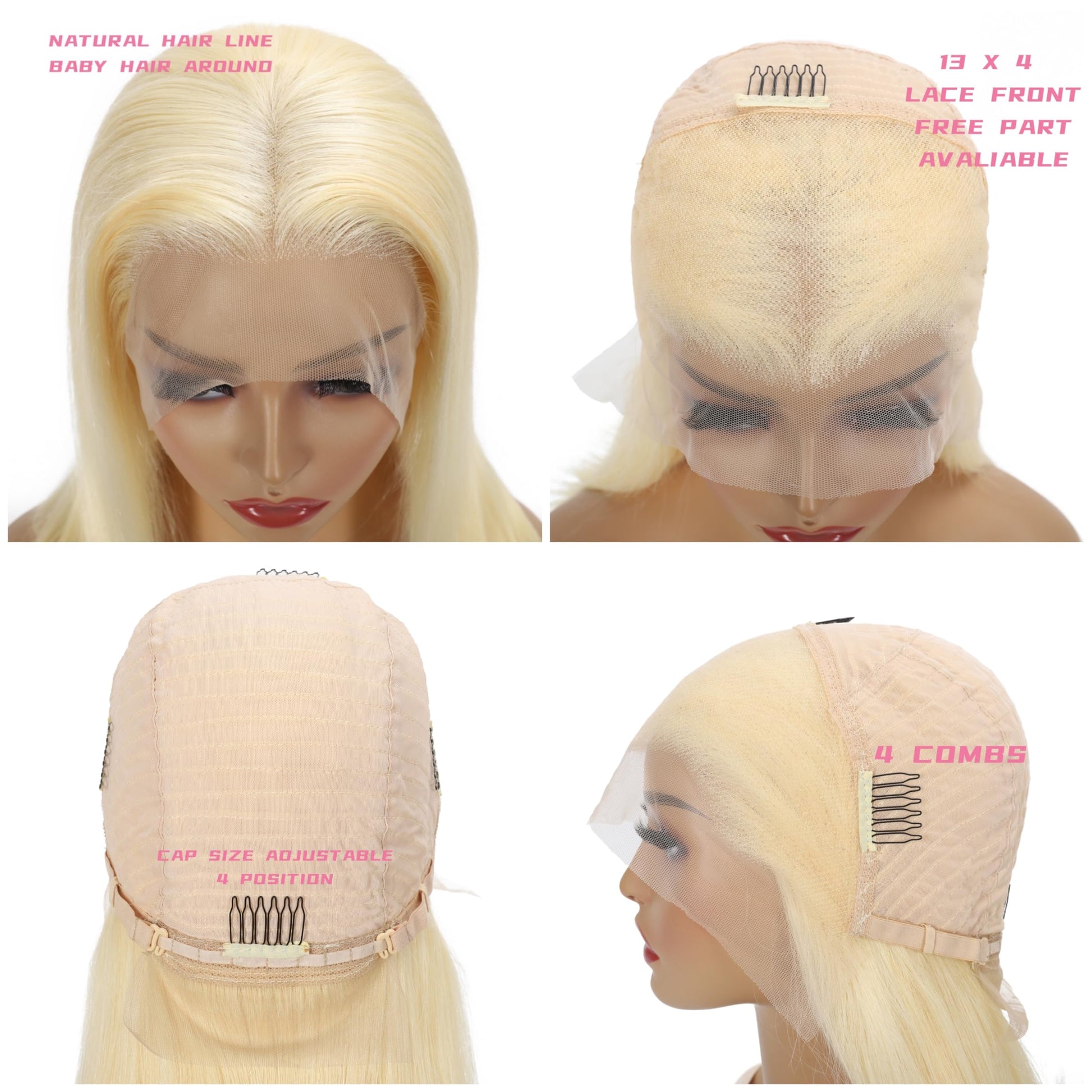 - 613 Blonde Lace Front Wigs Human Hair Cap Size: Blonde Bob Wig Human Hair Bleached Knots Medium Cap Size(22 inch - 22.5 inch), With Combs And Adjustable Straps Make It Fit Most People And Easier To Wear, Friendly To Beginner.