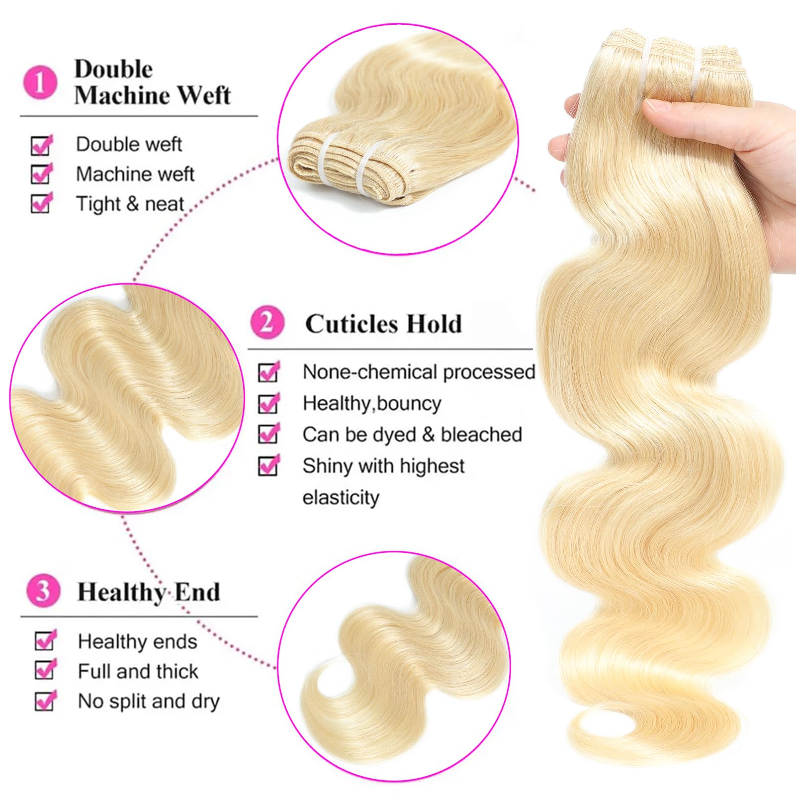 - Blonde Body Wave Bundles Persistence: Selected from High Quality Hair, It Can Keep the Texture after Washing, The Time Keeps Texture Longer. We Recommend Regular Care for Hair (Once a Week). Never Use Too Hot Water While Washing The 613 Bundles