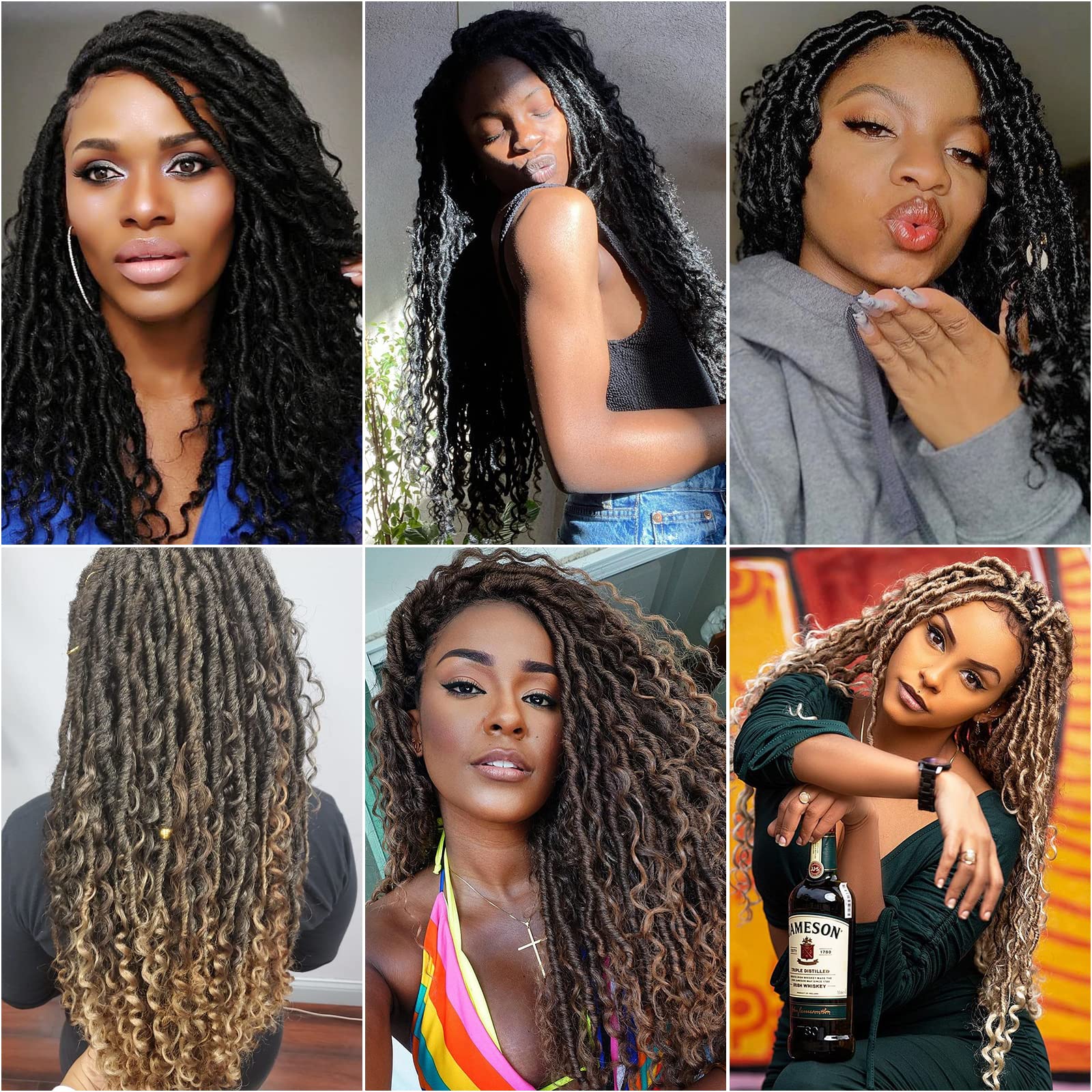 6Packs Goddess Locs Crochet Hair,22Inch Curly Faux Locs Crochet Hair Hippie Locs Crochet Braids Long Crochet Goddess Faux Locs for Black Women(22inch 1B/27)
