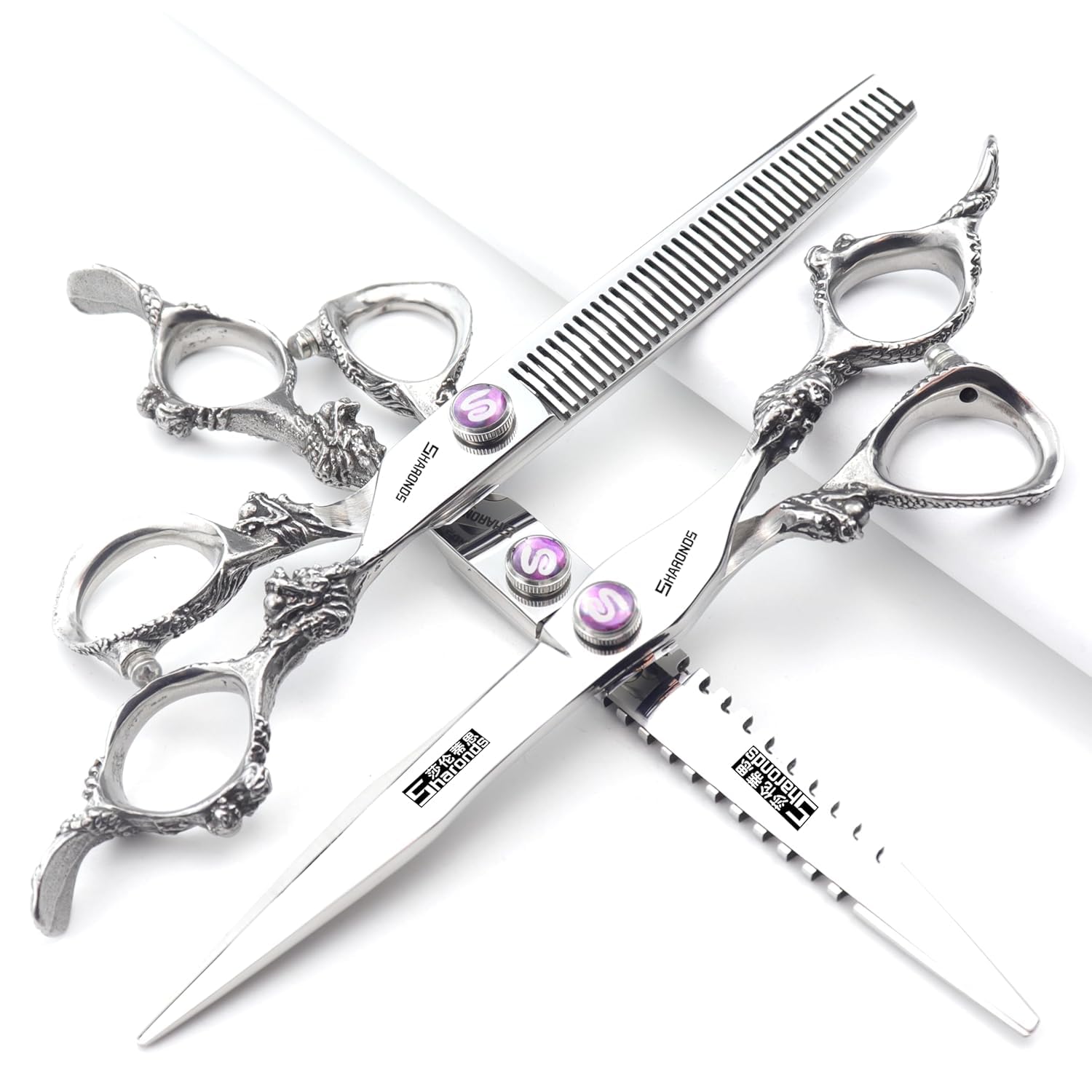 7" 7.5" 8"9" Professional Hairdressing Scissors Barber Salon Hair Cutting Dragon Shears (Large). (7 inch 3pc)