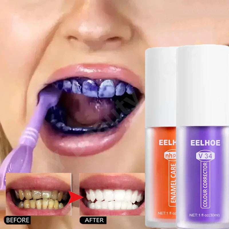 â V34 Purple Orange Toothpaste Teeth Whitening Remove Plaque Stains Cleaning Oral Hygiene Bleaching Tooth Care Fresh Breath Dental Tools