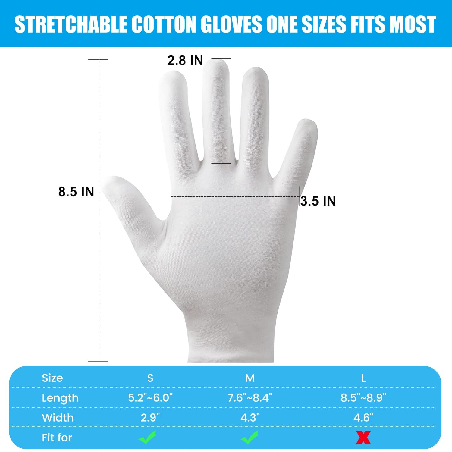 - 【7 Pairs Cotton Gloves】The package comes with 7 pairs cotton gloves, ensuring you have plenty for multiple uses. Our white cotton gloves are crafted from soft, breathable, high-quality cotton(95%) & polyester(5%), ensuring comfort and durability for long-term wear, suitable for sensitive skin.
