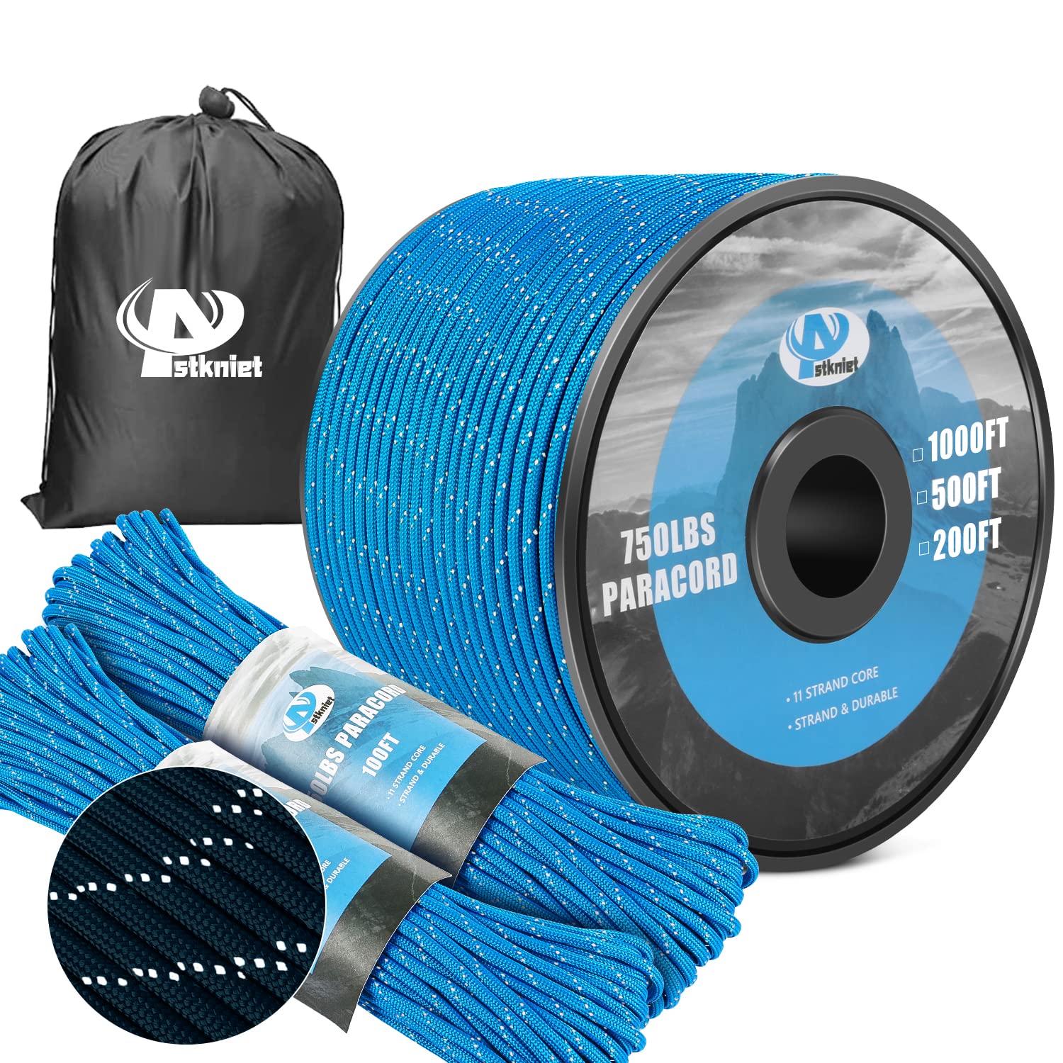 750Ib Reflective Paracord Rope,100',4mm 11 Strand Parachute Spool Cord with Collecting Bag, para Cord Lanyard for Clothsline, Hammock, Camping, Hiking and Survival