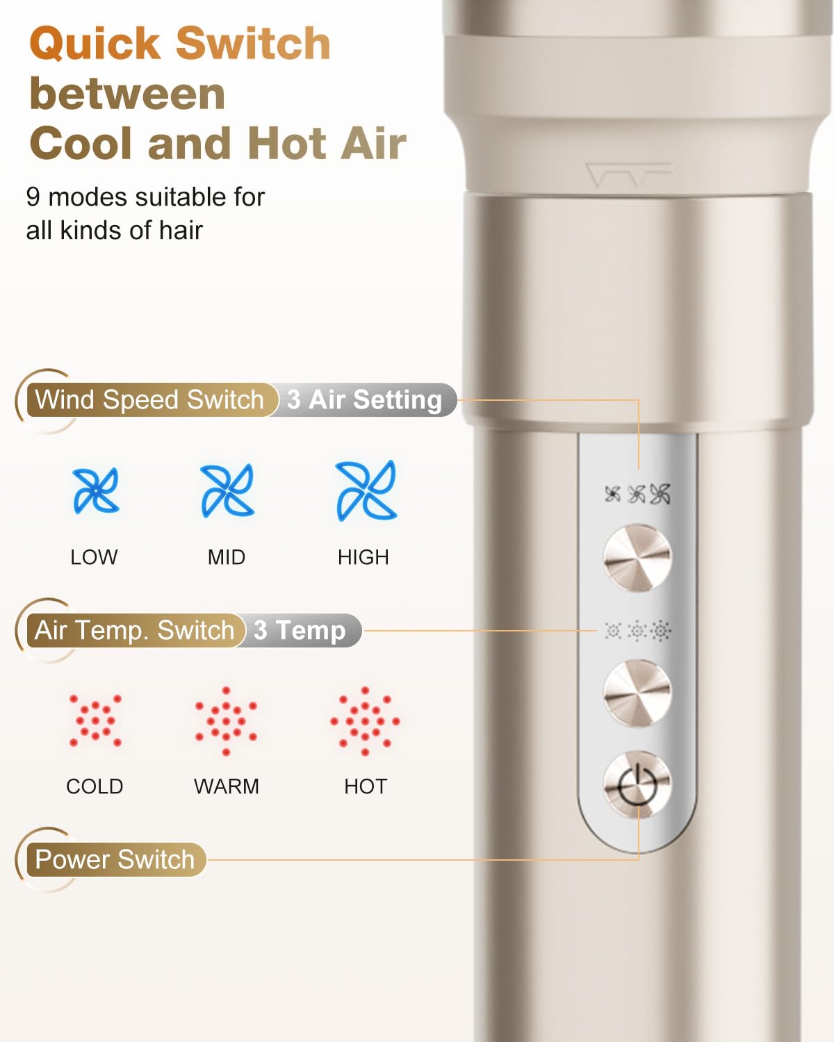 - NO HEAT DAMAGE: Gives you fast drying while maintaining low heat, rather than getting hotter as it runs, This hair styler and dryer with intelligent thermal control can automatically detect the air temperature, thus controlling it below 248°F to avoid irreversible heat damage to the hair.