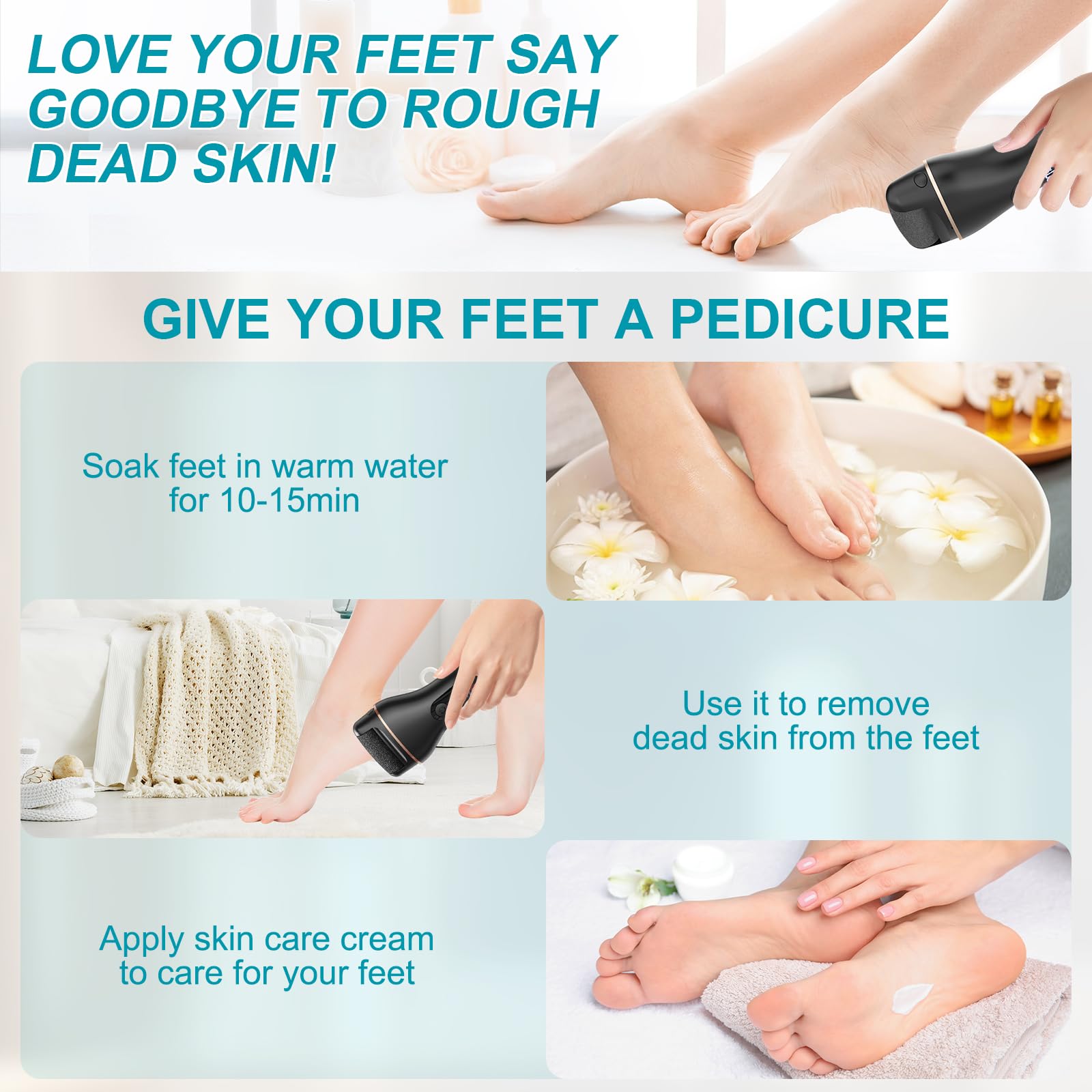 Electric Foot Callus Remover- Long Service Time, Rechargeable Electronic Foot File- Ideal Gift, Professional Pedicure Tools, Waterproof Foot Scrubber, Pedicure Kit Feet Care for Dead Skin (Black)