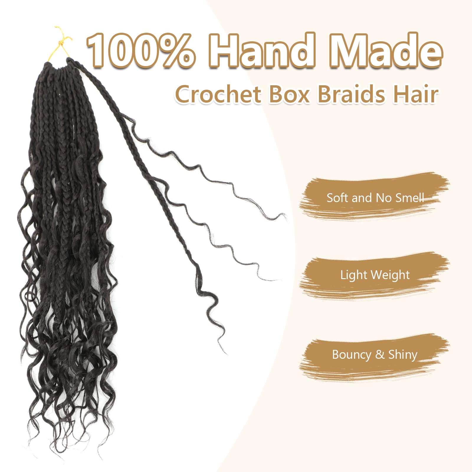 - 【Crochet Box Braids Style】-- Big Pre looped crochet braids crochet hair, boho crochet braids bohemian crochet hair easy to wear;box braid crochet hair pre looped; 3X crochet braids hair with curly ends,Boho crochet braids Handmade crochet hair for black women.