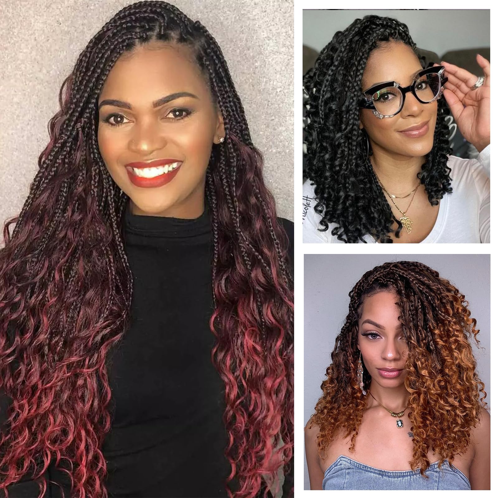 - 【Goddess box braids Crochet hair Package】--8 Packs 18 inch boho box braids crochet hair pre looped , 14 roots/pack crochet braids with curly ends, 80g/Pack Crochet box Braids crochet Hair.