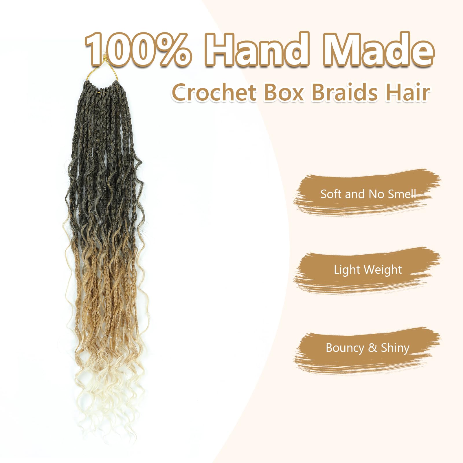 - 【Box braid Crochet Hair Material】--Box braid Crochet hair Made temperature synthetic fiber. Natural looking, No Smell, No Tangle, Box Braid Crochet hair Curly Ends is every beautiful.