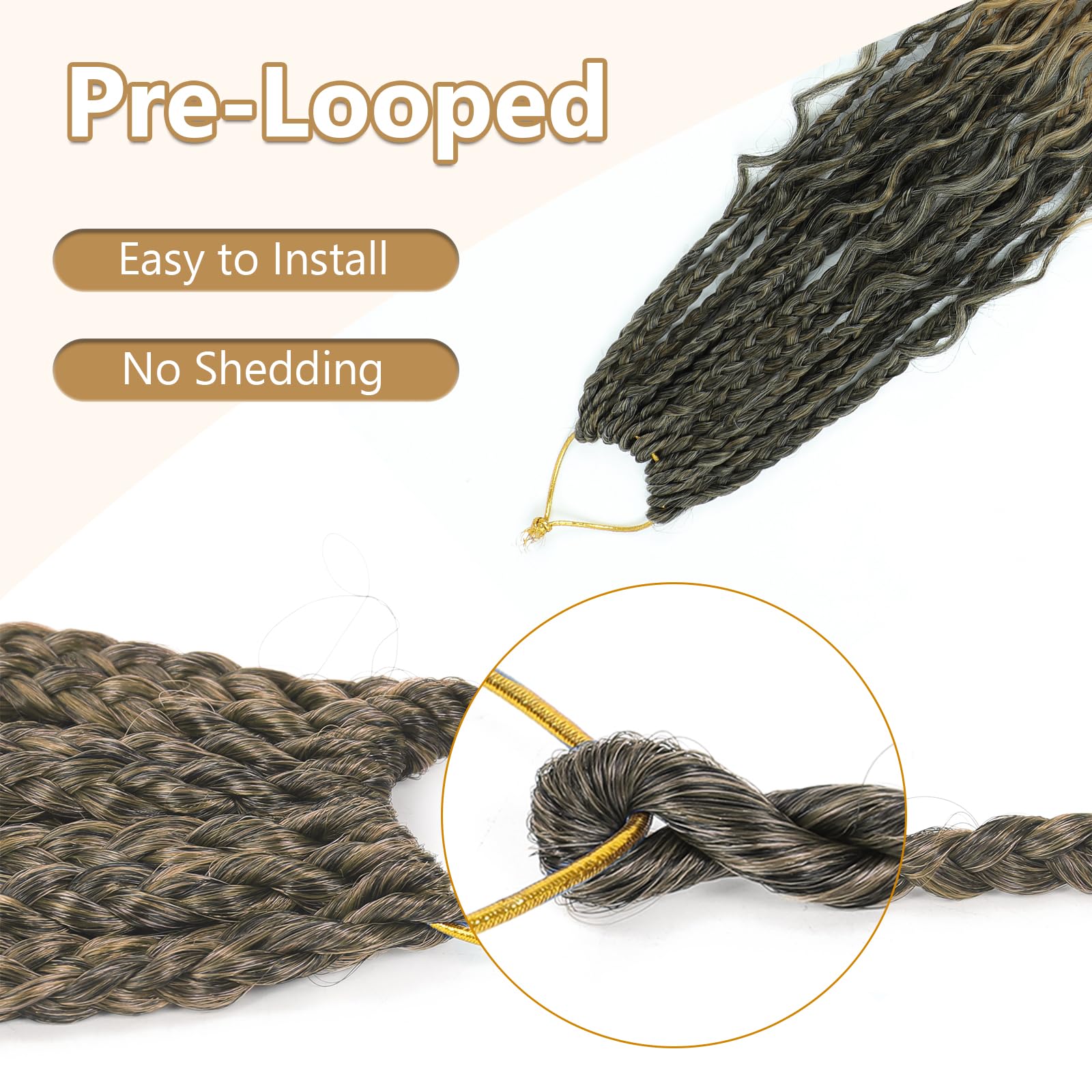 - 【Crochet braids Feature】--Crochet braids pre looped,Easy to Install; Prelooped crochet hair,Embrace your natural beauty.Crochet hair for kids,No harm.Crochet Box Braids Light Weight, Tight Shiny and Silky, Smooth, Compact, Very Soft, Not Rough, No Smell, No Tangle, Not Easy to Separate, Easy to Install, Beautiful Hair and Look Natural , Last Long Time