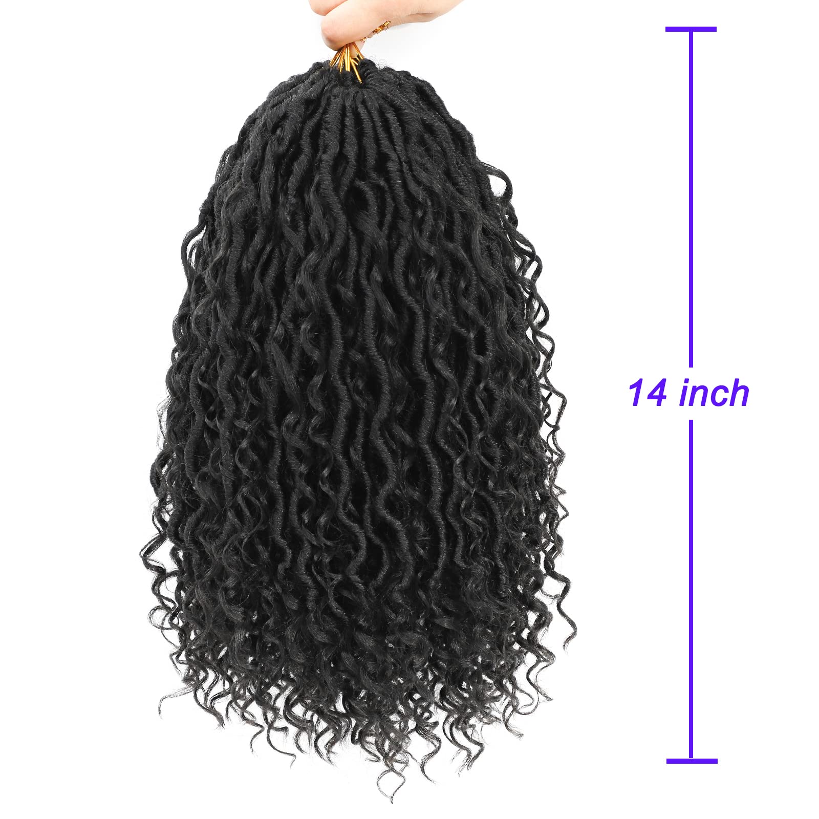 8 Packs Curly Faux Locs Crochet Hair, 14 Inch Goddess Locs Crochet Hair, Hippie Locs Braids Hair Extensions (14Inch, 8Packs, 1B)