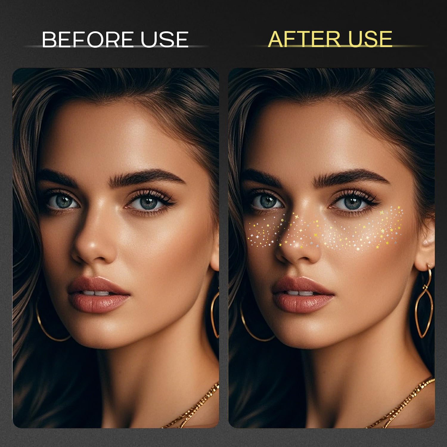 - Dual-Tone Glitter Freckles: Our glitter freckles feature a stunning gold-silver dual-tone glitter star and freckled design, adding a touch of glamour and sparkle to your look.