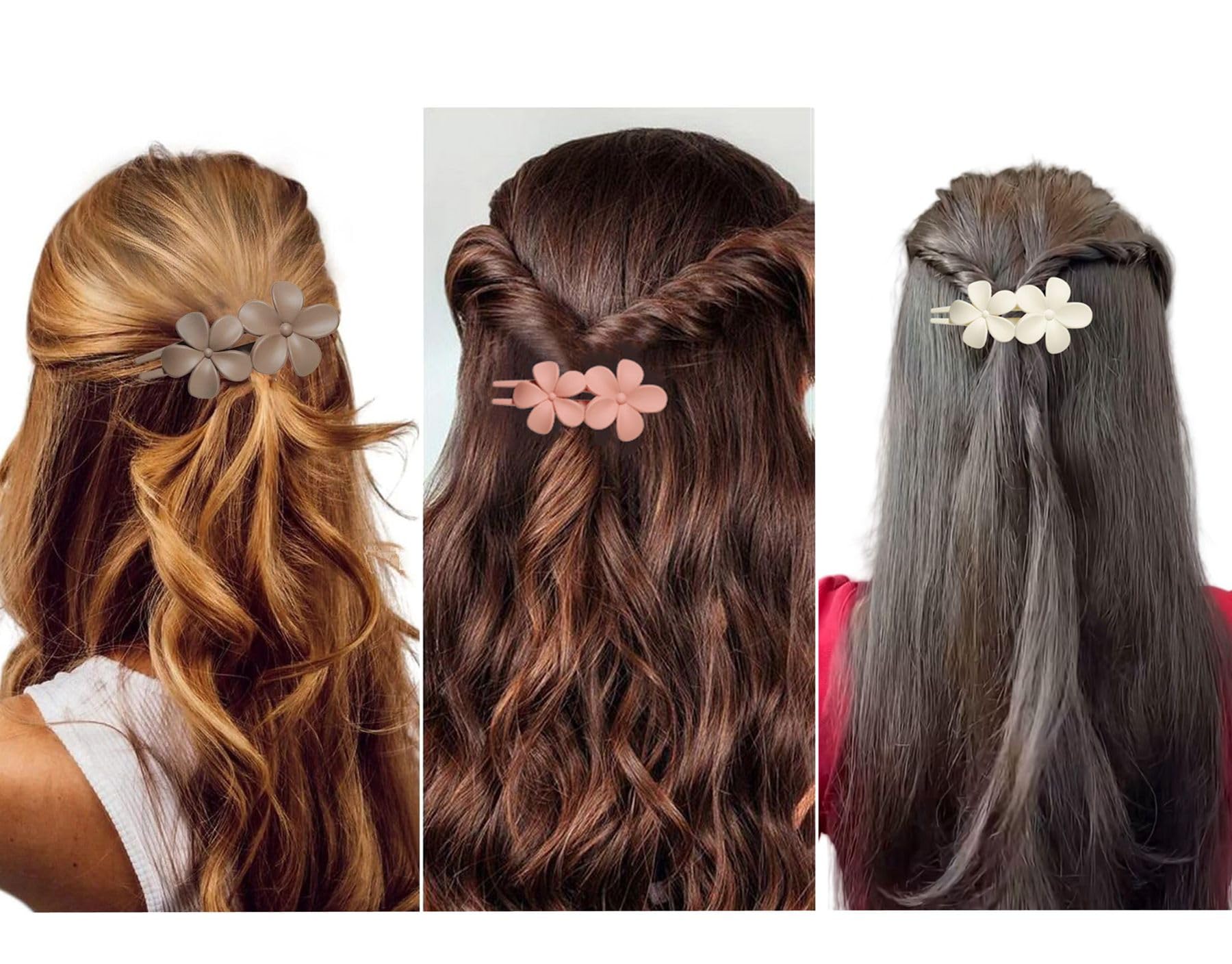 - NON-SLIP DESIGN: The flower-shaped hair clip a total of 10 small gripping teeth, respectively, distributed along their sides and tail ends. These tiny teeth securely hold your hair in place without causing damage, ensuring a firm yet gentle grip for a comfortable and safe styling experience.