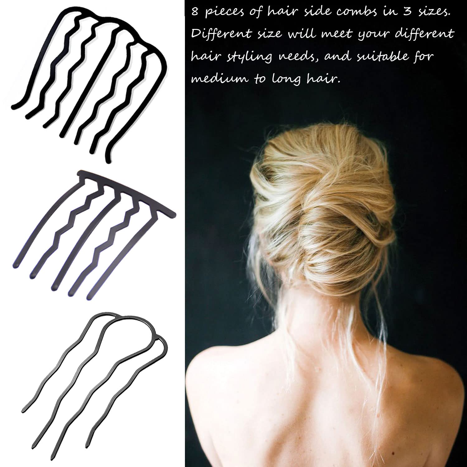 Details: 8 Pieces Hair Side Combs, Metal Hair Fork Clip Hair Pins for Buns 4 Prong Hair Updo U-Shape Hair Sticks for Women Hair Styling Tool Accessories