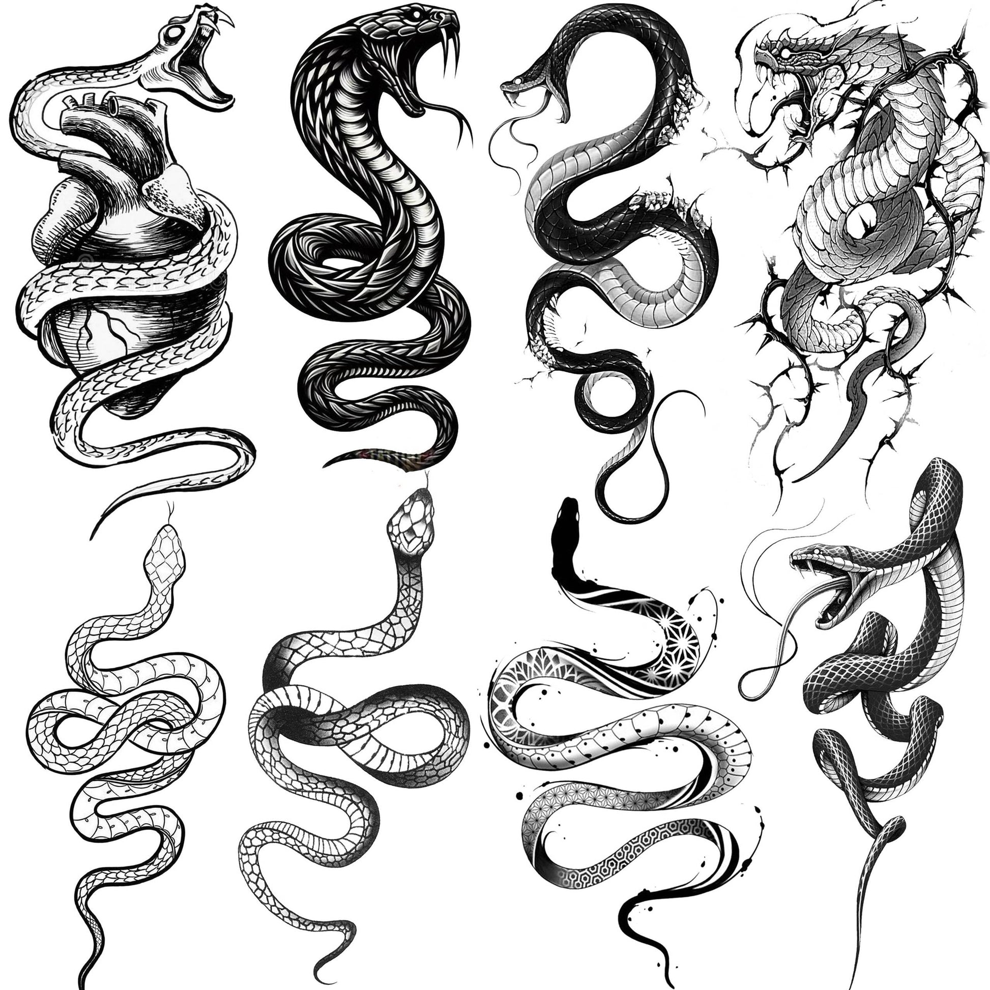 - 🌊【8 Sheets Groovy 3D Realistic Snake Temporary Tattoos For Women Men Adults 】TASROI Unique Design Snake Tattoos For Men Realistic Halloween Black Cobra Serpent Tattos. 【Size】8 Sheets Fake Tattoos For Women Template 7.4'x3.7'.