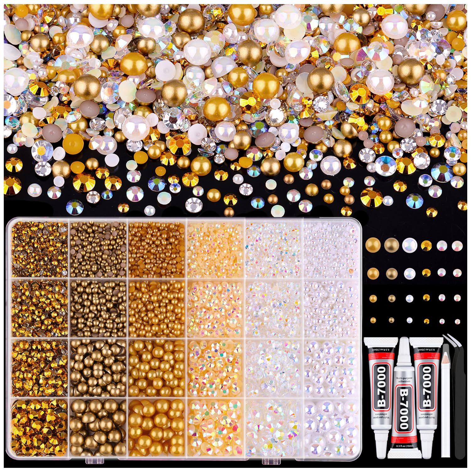 - ♛WHAT YOU WILL RECEIVE: A box of 9570pcs flatback pearls and rhinestones to meet your different needs. Besides, this set of half pearls and gems comes with a tweezer, a picker pencil and 3pcs 10ml B7000 jewelry adhesive glue, which helps you spare no effort to pick up the beads and enjoy the fun of DIY.