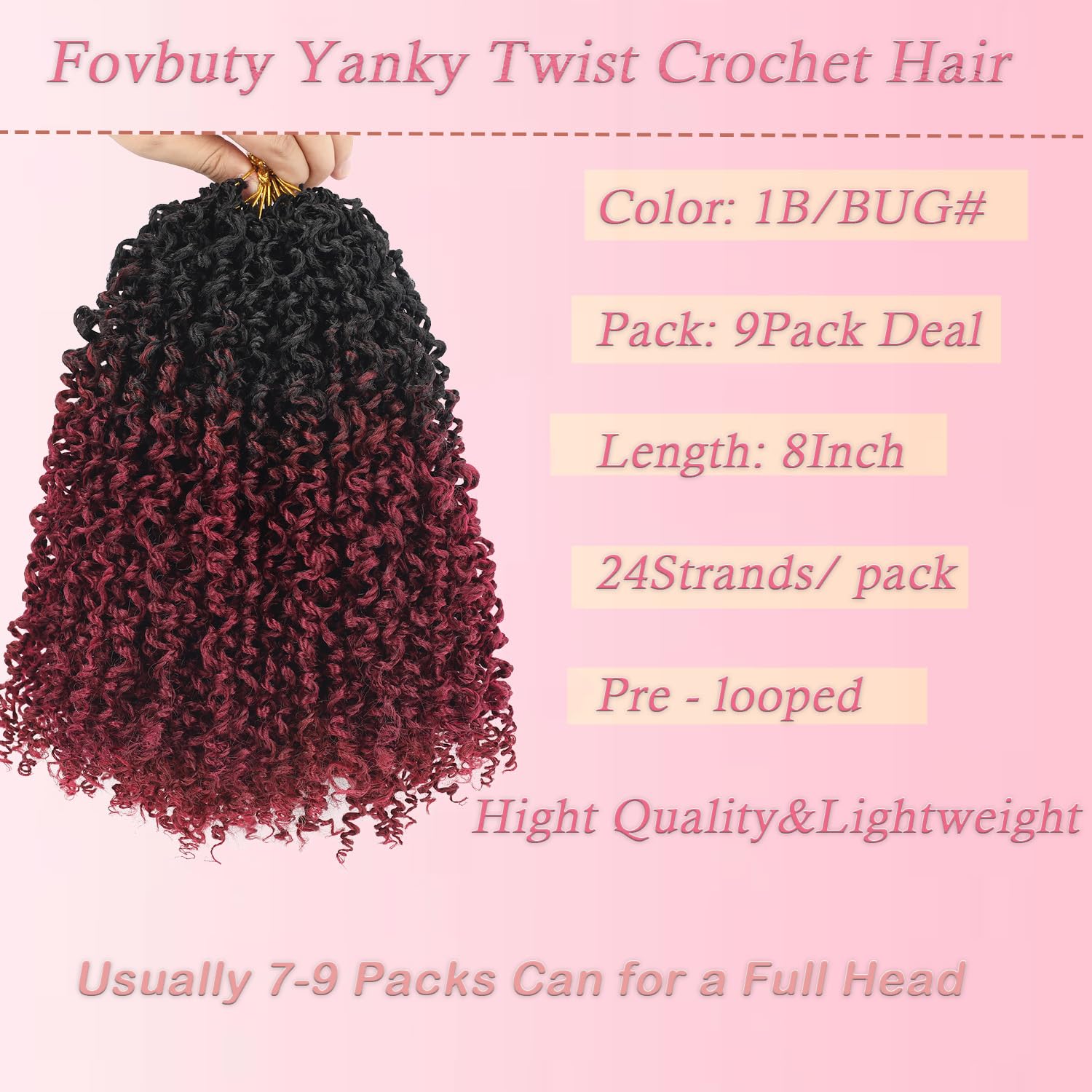 - 【8 Inch Pre-twisted Yanky Twist Crochet Hair】 Get Ready to Show off Your charm with Our Beautiful Yanky Twists Braiding Hair Curly Ends! Our New Style Bohemian Yanky Twists Crochet Braids is Pre-Twisted, with Very Natural Little Curls at the Ends, 9 packs/lot, 24 strands/pack, total 216 Strands,Usually 8-10 Packs Can Full One Head.There are many colors to choose from to match your style!