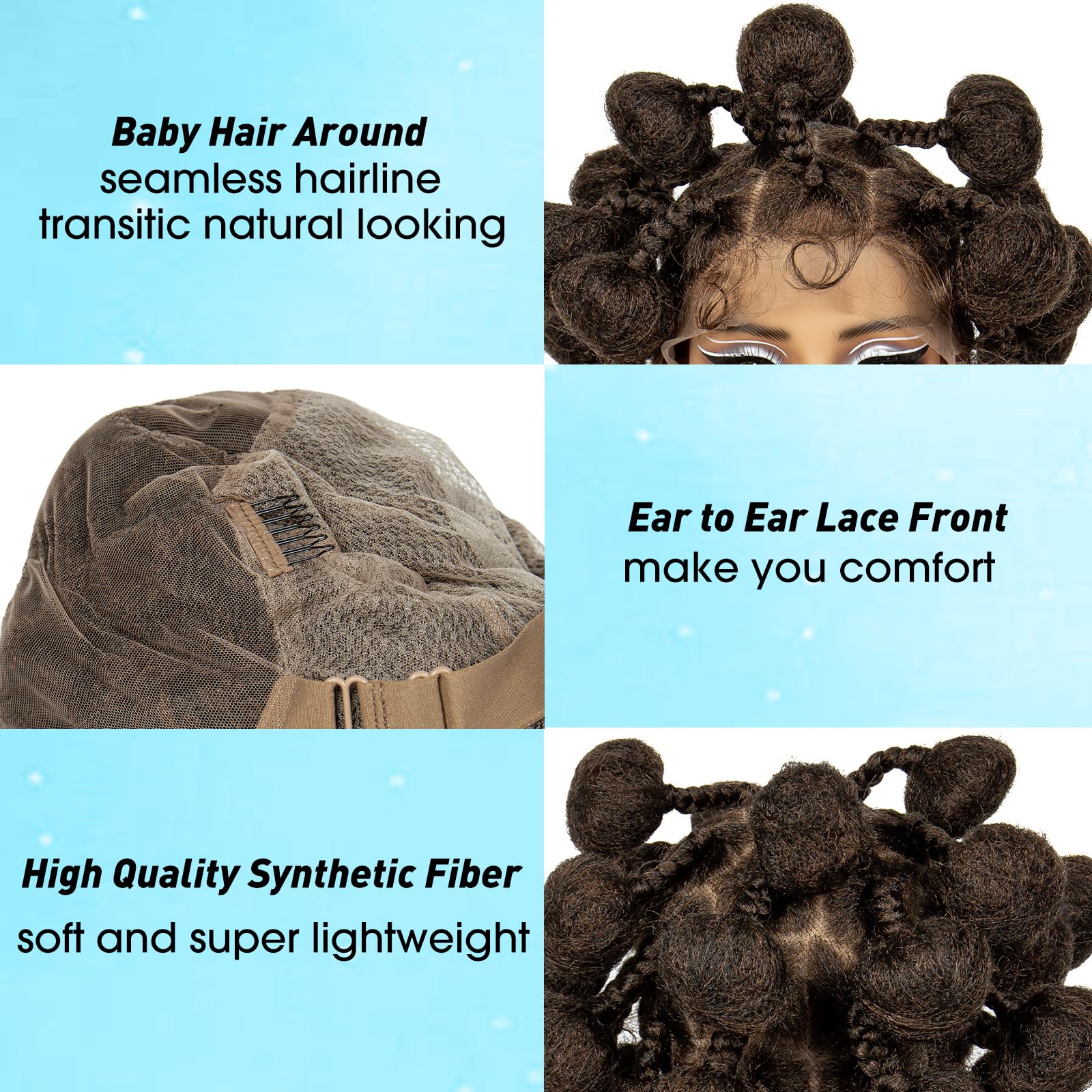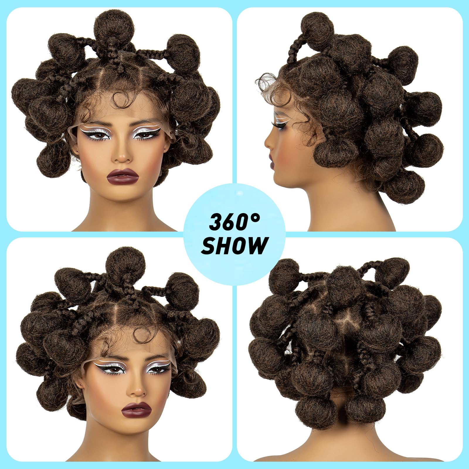 A ANYTIME Handmade Bantu Knotless Braided Wigs Synthetic Full Lace Braided Wig Buns Wig Full Lace Braids Wig with Baby Hair African Braiding Hair Wig for Black Women(1B-30)