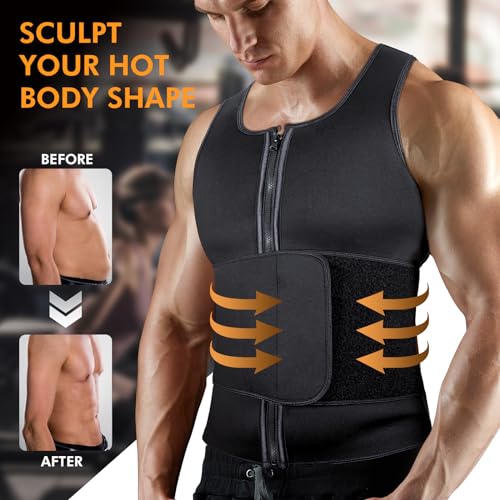 - ✔️SUPER COMFORTABLE EXERCISE CLOTHES - We have upgraded the sauna vest with durable anti-slip resinic zipper and extra 3 spiral steel bones to hold the shape and provide solid back support. It's the perfect male corset for the slimmer who exercises to burn fat.