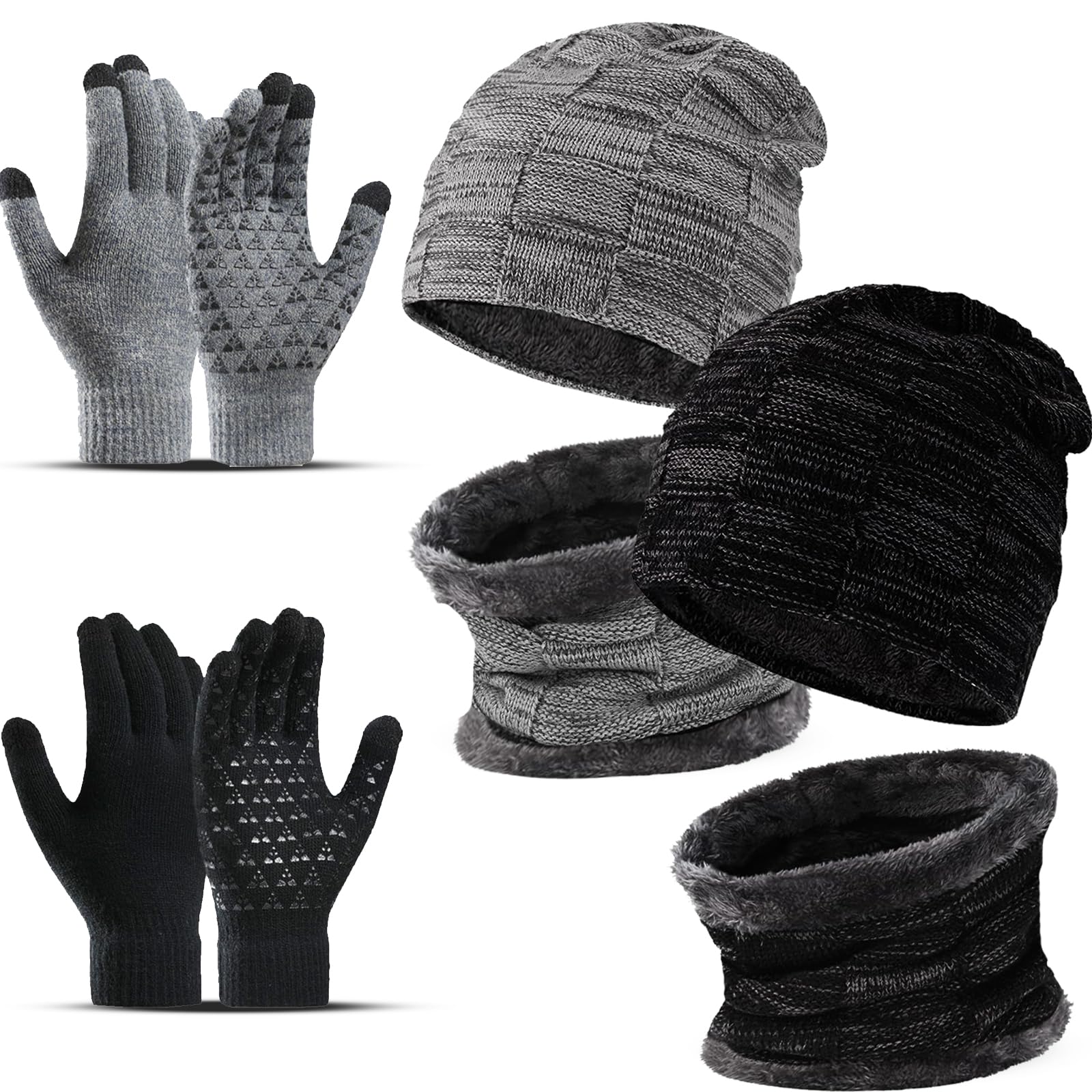 ABUDDER 6 Pieces Winter Beanie Hat Gloves Scarf Set for Men Women,Knit Fleece Lined Winter Hat Touchscreen Gloves Neck Warmer Set for Cold Weather