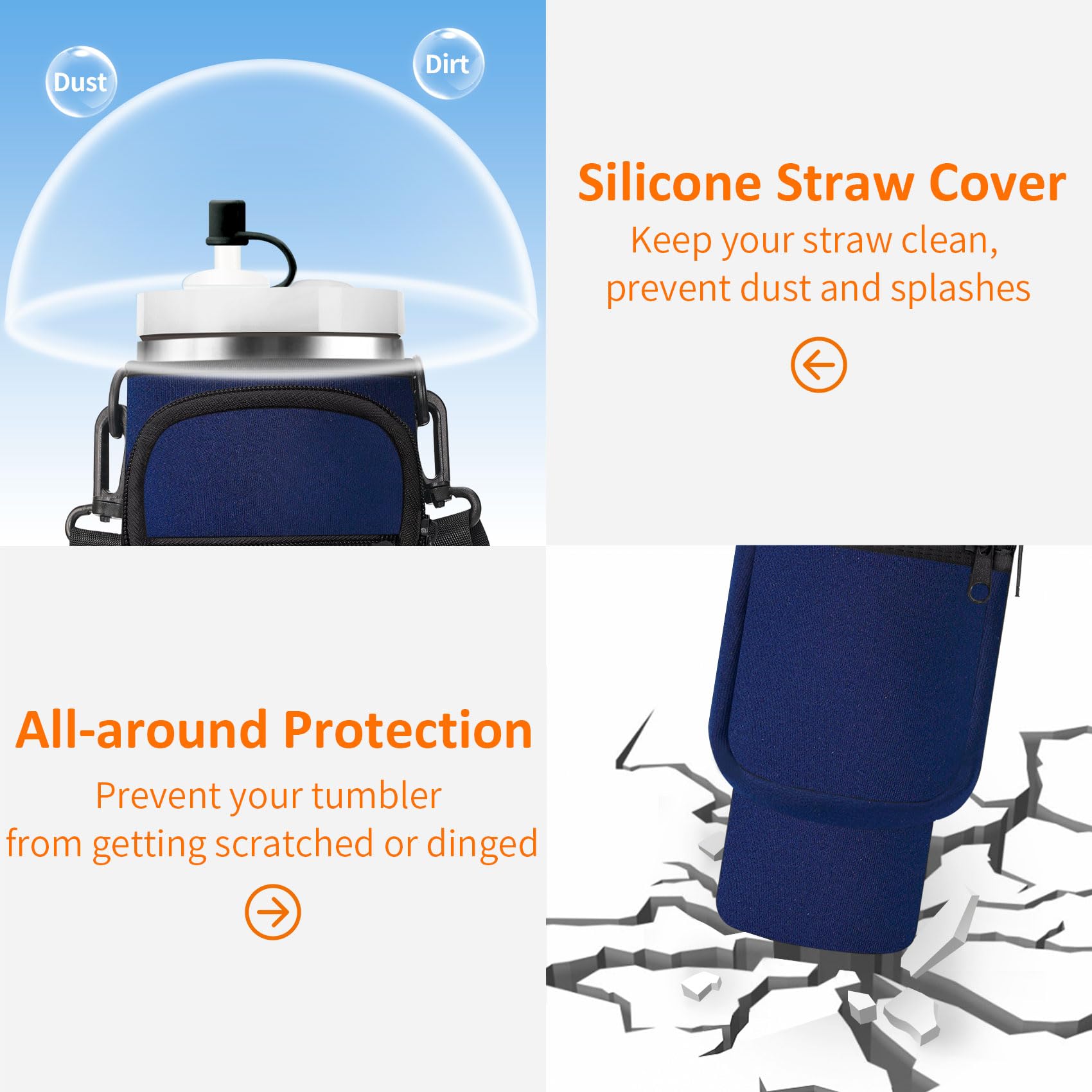 - 【Convenient Front Pocket & Bonus Straw Cover】Features 2 front zipper pockets that offer ample space for your essentials. The large zipper pocket accommodates smartphones up to 7 inches, earphones, and lipstick, while the small pocket is ideal for cash, cards, keys, and more, allowing you to keep your hands free.The straw cap keep your straw clean from dust and spills.
