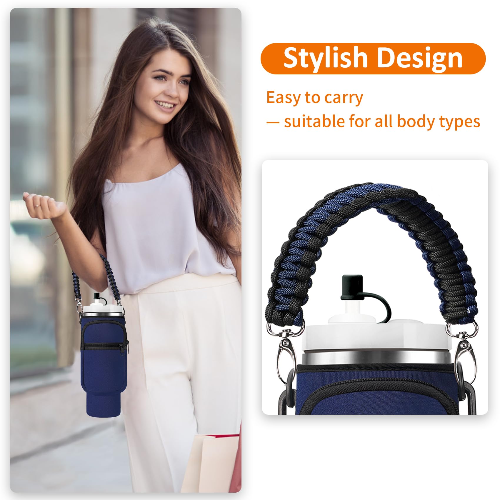 - 【4 Ways to Carry】Comes with a removable paracord handle and adjustable shoulder strap to fit a variety of uses and body types. You can use it as a shoulder bag, crossbody bag, waist bag, or handbag, making it easy to carry your tumbler effortlessly wherever you go.