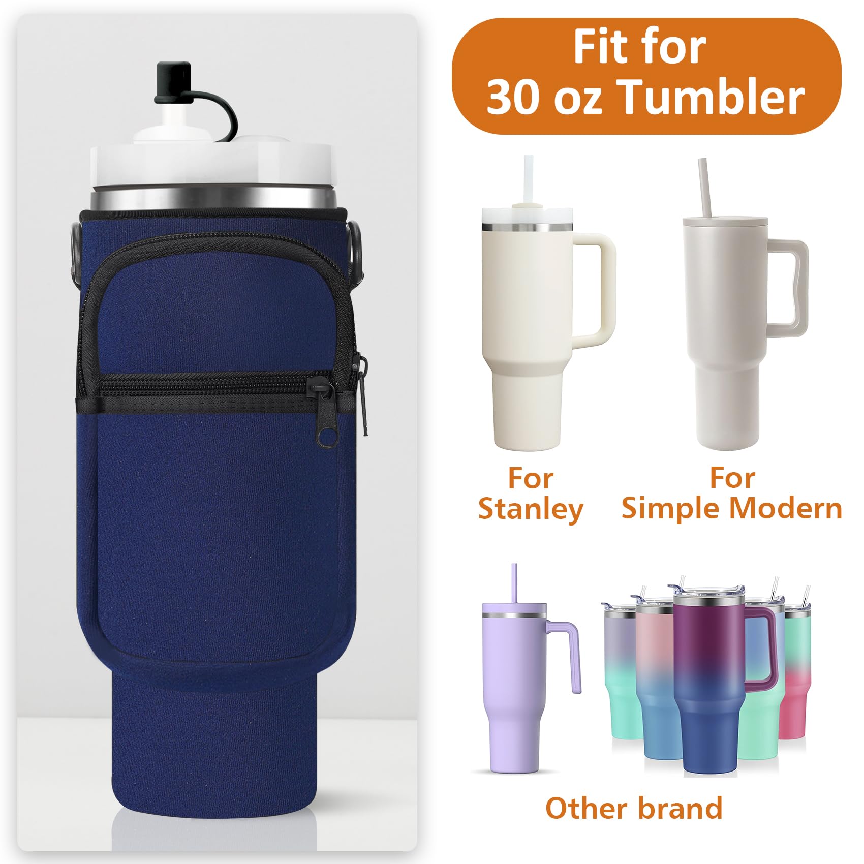 - 【Perfect for Stanley 30 oz Tumbler with Handle】The water bottle carrier is designed for Stanley 30 oz tumbler with handle, Simple Modern 30oz tumbler with handle, and other brand. It's perfect match for Stanley Quencher H2.0 30 oz and Stanley Adventure Quencher 30 oz. The snug fit of the carrier ensures that your tumbler stays securely in your car cup holder.