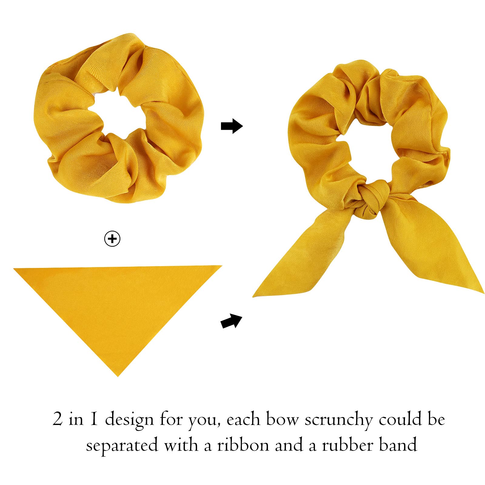 - So Many Options: Each hair scrunchie is 2 in 1 design. These bow scrunchies can be use separated, if you do not like the bow or you want it to be simpler in different occasion, you could just take it off from the normal elastic hair ties or use your imagination to match it with other color ribbon whatever you like.