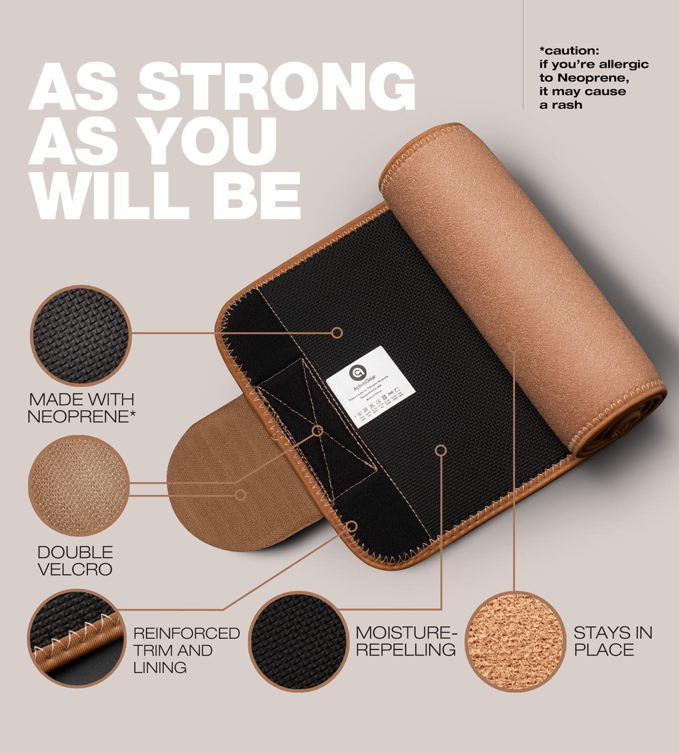 ActiveGear Waist Trainer for Women & Men – Skin Colored Sweat Band Waist Trimmer Belt for a Toned Look - Reinforced Trim and Extra Secure Fastening (Cinnamon, Medium: 8” x 42”)