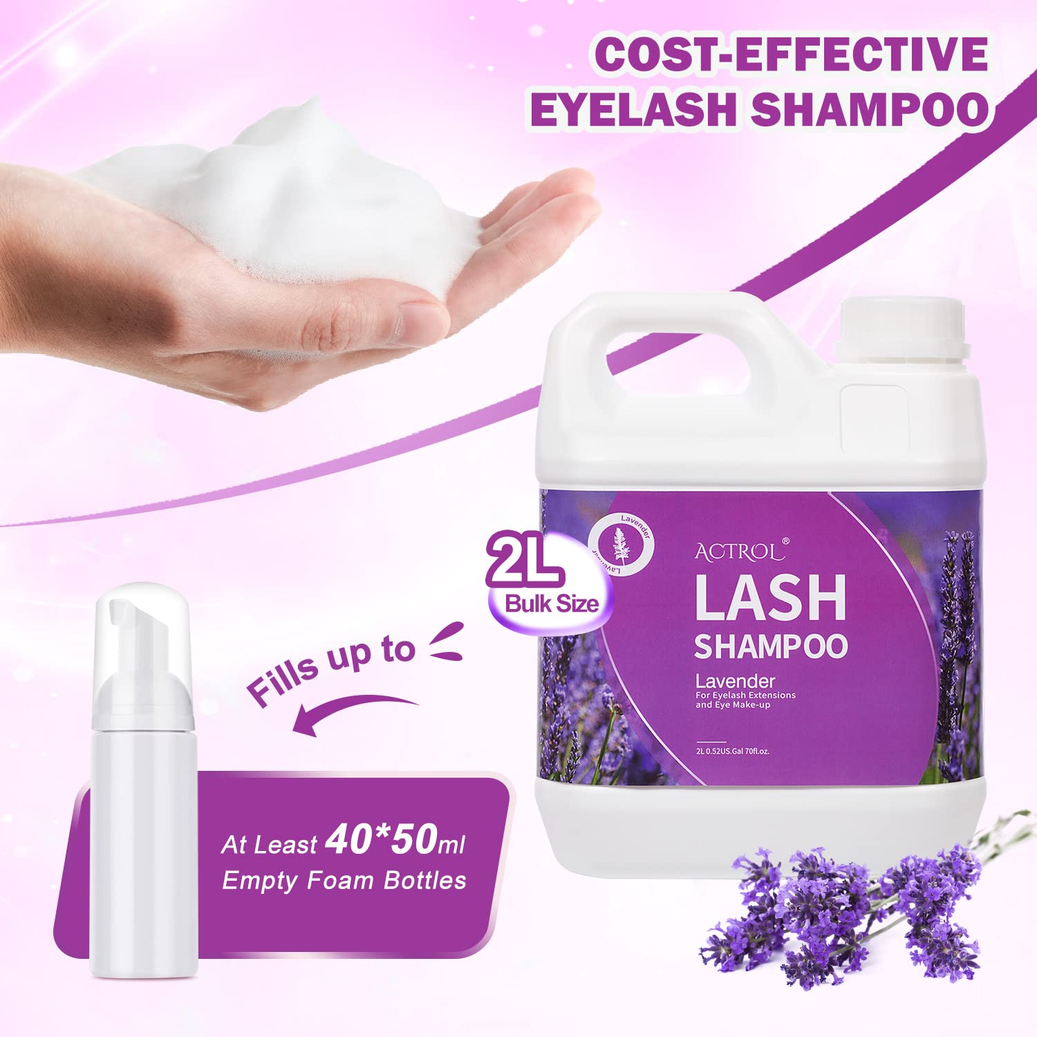 ACTROL Eyelash Extension Cleanser Lavender 2L Natural Lash Extension Shampoo Professional Eyelid Foaming Cleanser Paraben & Sulfate Free Non-lrritating with Salon and Home Care