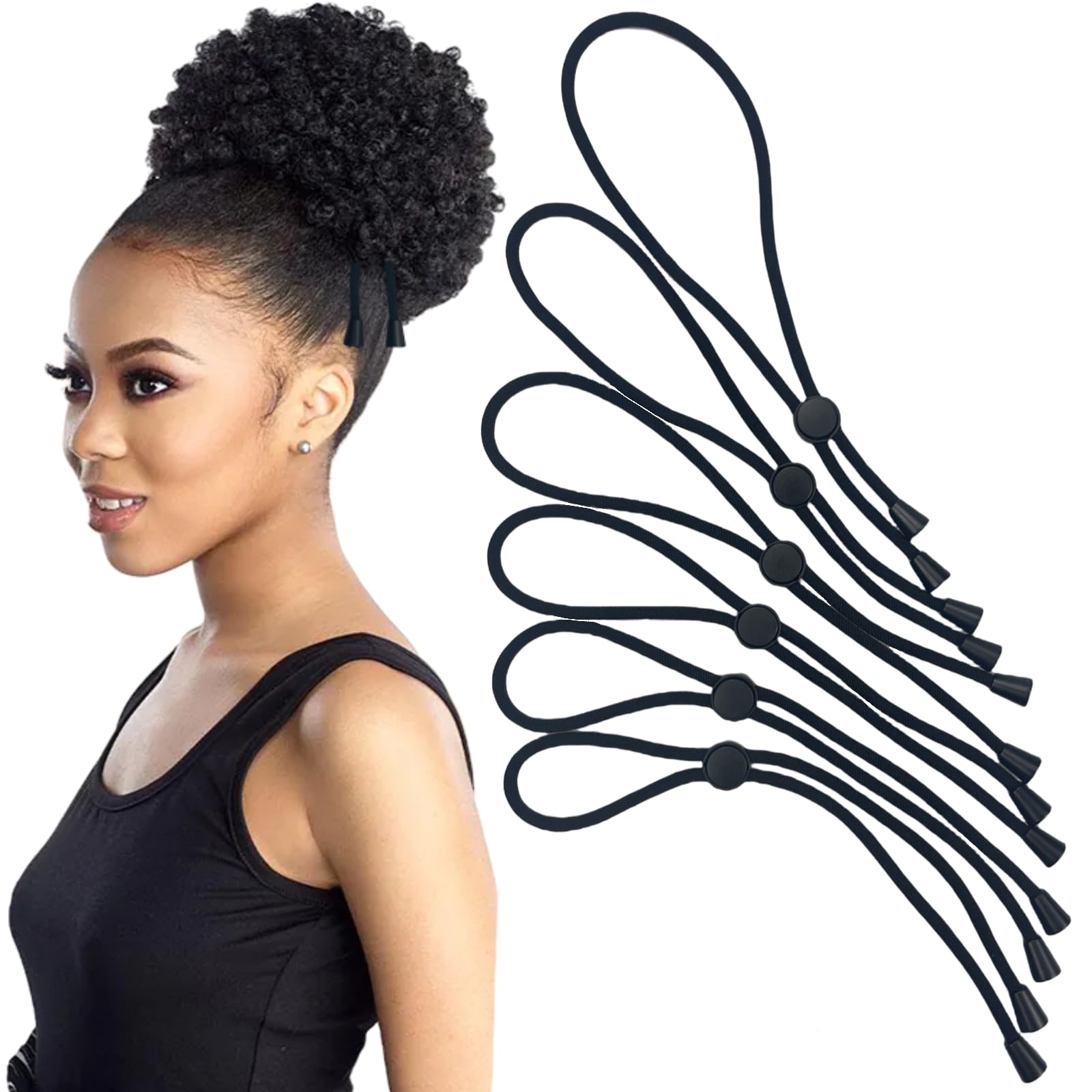 Adjustable Hair Ties for Thick, Curly Hairstyles - Afro Puffs, Ponytails, Locs, Pineapples for Black Women and Girls (Pack of 6)