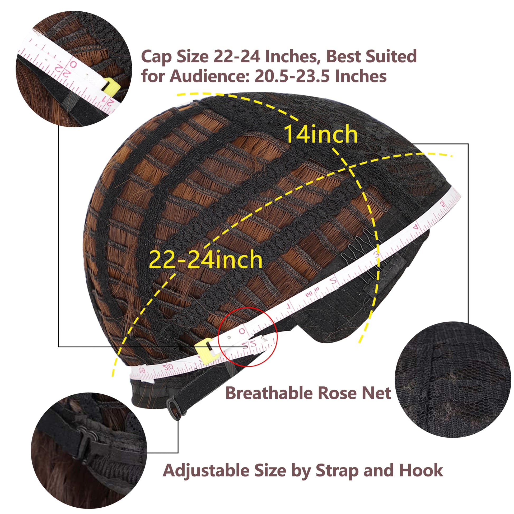 - 【Wig Cap Structure】Circumference 21-23 Inches, Two Adjustment Straps Can be Linked to a Fixed Position to Fit Different Head Sizes.