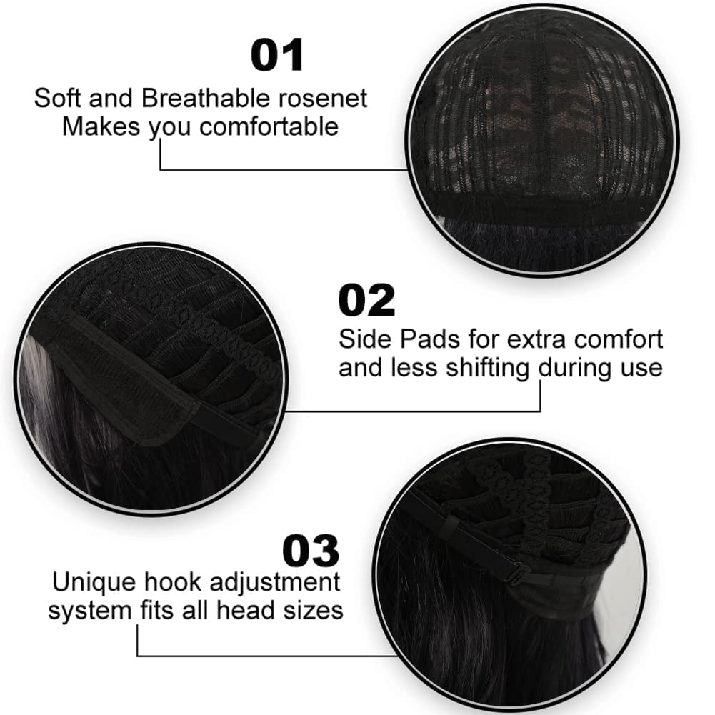 - Adjustable Size:About 21'-23'.There are 2 adjustment straps and 2 combs inside the long wavy wig,you can adjust the hook inside the cap to the correct size to suit your head.