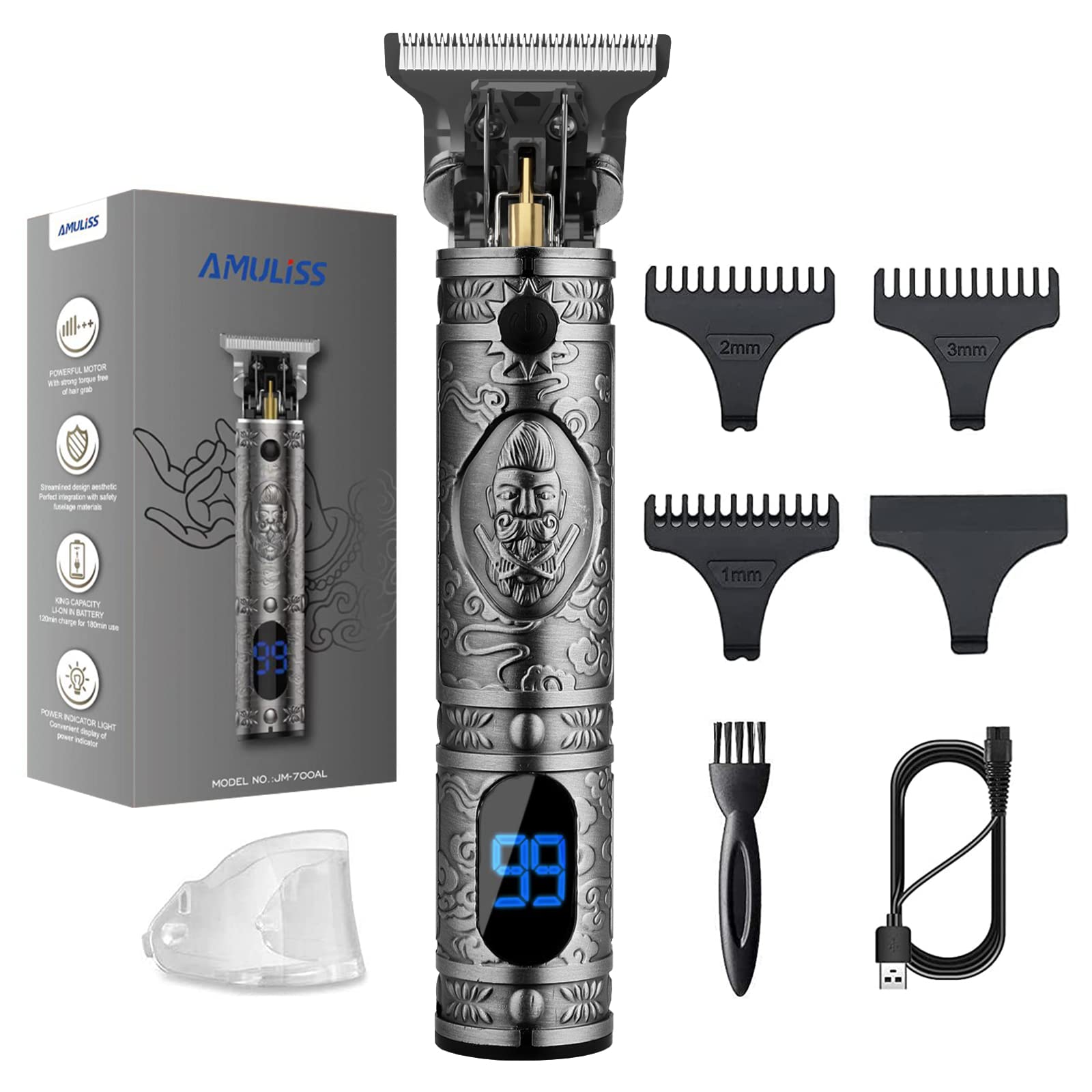 AMULISS Pro T Outline Clippers Trimmer, Electric Pro Li Blade Grooming Cordless Rechargeable,Professional 0mm Baldheaded Zero Gapped Hair Clipper for Men