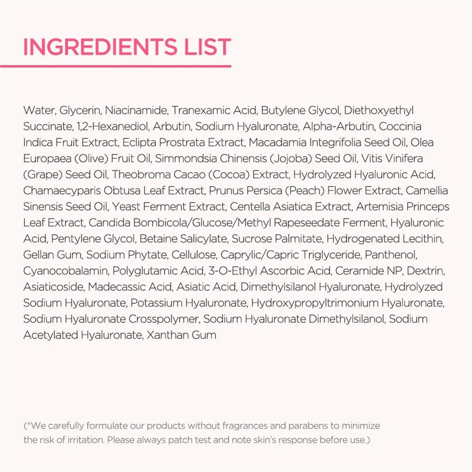 - [BRIGHTER COMPLEXTION AND EVEN SKIN TONE]: Containing 10% Niacinamide, 4% Tranexamic and 2% Arbutin, a powerful  of active ingredients to target dull skin, uneven skin tone and enlarged pores.
