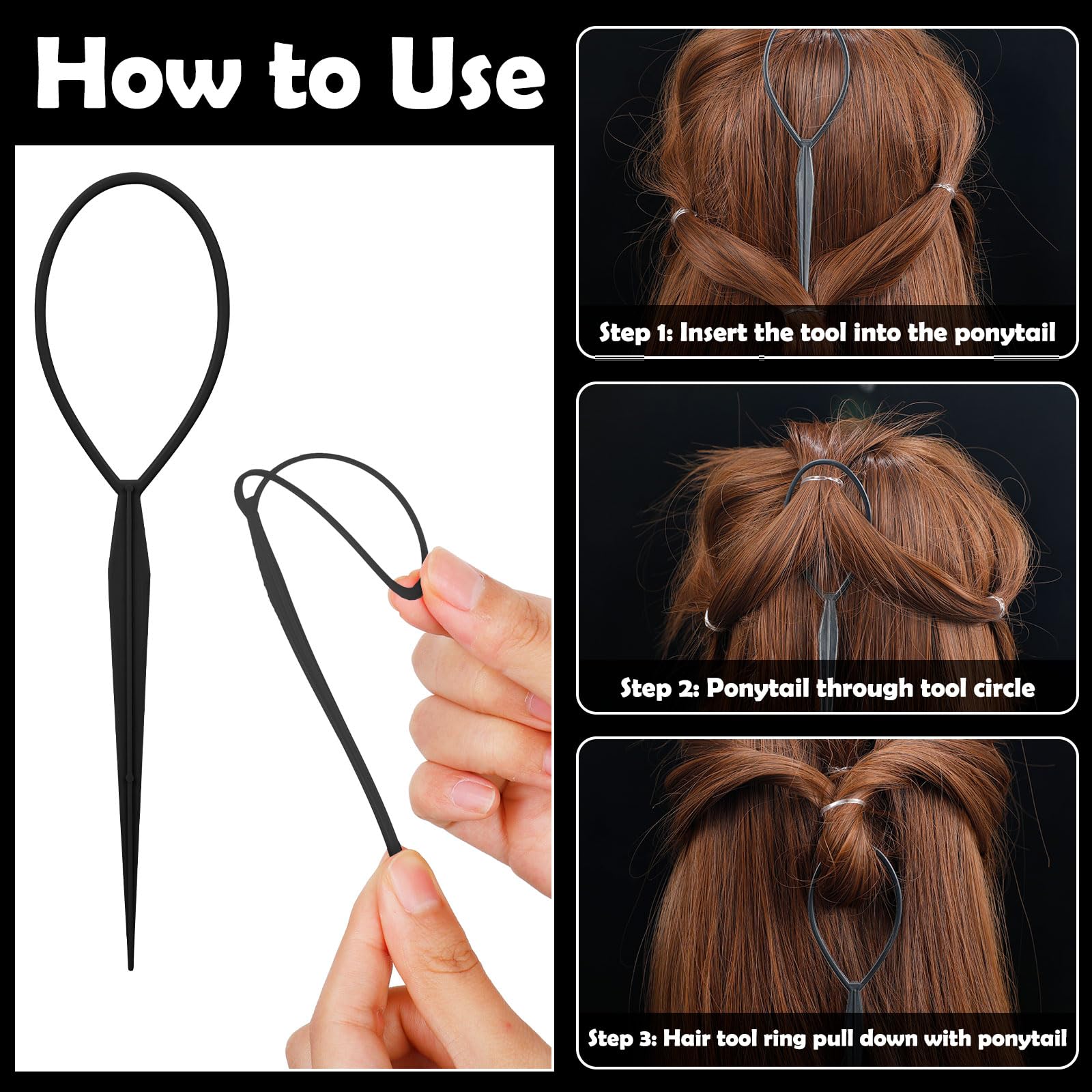 - 【Hair Styling Tools】Insert the hair loop styling tool through the tool ring into the hair, and pull it inward and downward to complete the style. Rat tail comb is great for zoning, separating, backcombing and styling hair. Hairpins provide better combing and fixation of hair.