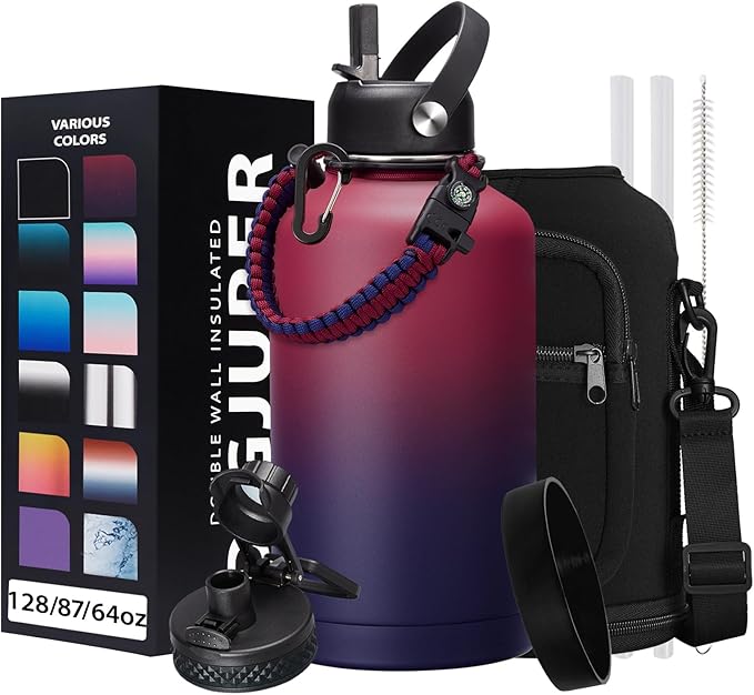 - SUPER JOYFUL COMBO: Buy a 64 oz insulated water bottle, get 9 accessories (2 x lids, 1 x survival paracord, 1 x carrying pouch, 1 x shoulder strap, 1 x protective cup mat, 2 x straws, 1 x straw brush). DIGJUPER provide a lifetime warranty and 7X24H customer service.