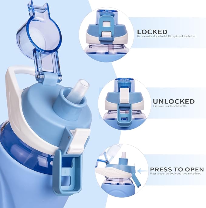 - 💧 【DETACHABLE STRAW & WIDE MOUTH】With a removable straw, you can directly suck without turning your head to the sky, perfect for spill-free drinking. The wide mouth makes it easy to clean the water bottle throughly and fit fruits and ice cubes in it. Great for infused water, smoothie, juice, milk, coffee, etc.