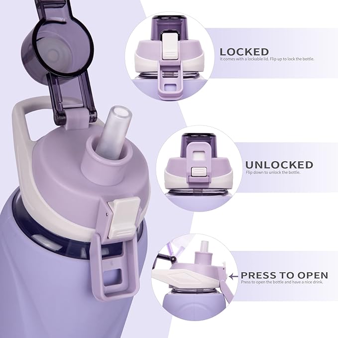 - 💧 【DETACHABLE STRAW & WIDE MOUTH】With a removable straw, you can directly suck without turning your head to the sky, perfect for spill-free drinking. The wide mouth makes it easy to clean the water bottle throughly and fit fruits and ice cubes in it. Great for infused water, smoothie, juice, milk, coffee, etc.