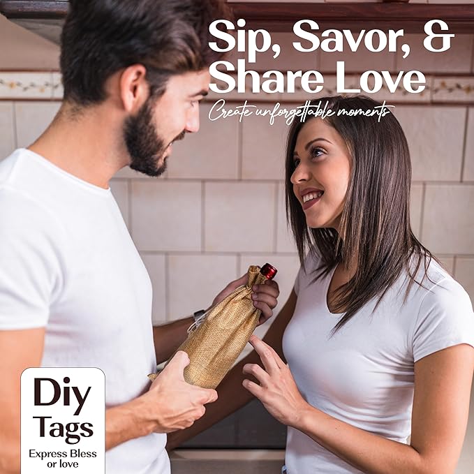 - Nice accessories for your next wine gift decoration: you will get 10 burlap wine bottle bags in a classic color, 12 wine bottle tags, a long string of burlap rope and one pen to write a special message, enough style and quantity to satisfy your use of burlap wine bags, and a nice combination for your wine decoration.