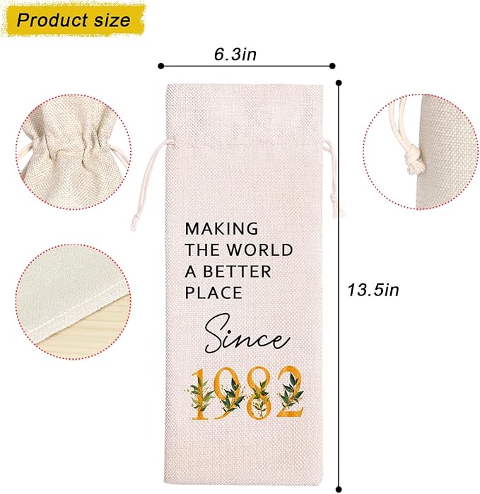 42 Birthday Gift | 42 Birthday Wine Bag Gift |Making The World A Better Place Since 1982 | 42 Birthday Gifts for Her Sister | 42 Years Old Gift Idea Wine Bag | Birthday Party Favors 11WB40