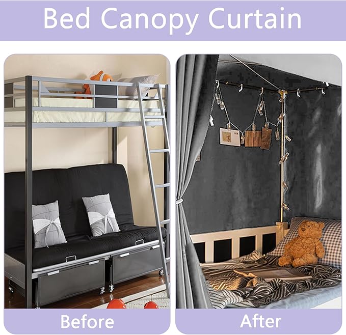 - 【Package Includes】1x Bed curtain+ 60 x Hooks+ 2 x Ropes(not include frame/post/Bracket). Super Easy Installation-with ropes and hooks, just hang up the bed canopy on the bed bracket.