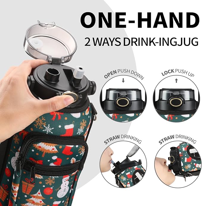 - Glass Water Bottle with Pop Up Lid : Our 42-64OZ glass water bottle with straw is designed with a pop up lid with silicone O-ring, secure lock & dust cover that ensures to be 100% leak-proof and dust-proof. This glass water bottle has two ways to drink water There's both a straw and a hole that can be drank from directly which is very convenient and fast