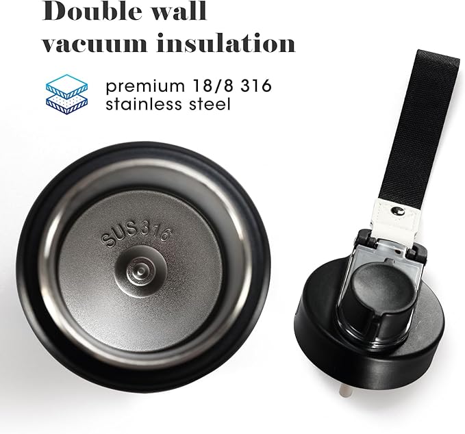- 【Upgraded material - 316 stainless steel】316 stainless steel is further upgraded on the basis of 18/8 (304) stainless steel (controlling the proportion of impurities, adding molybdenum), corrosion prevention, acid and alkali resistance, high temperature resistance is stronger than 18/8 (304), therefore: all kinds of strong acid and alkali drinks (cola, coffee), this stainless steel water bottle can withstand. 316 stainless steel can better adapt to the environment where the temperature is too high or low, and it will not affect its corrosion resistance. Therefore: it is durable and will never leave a metallic taste or rust.