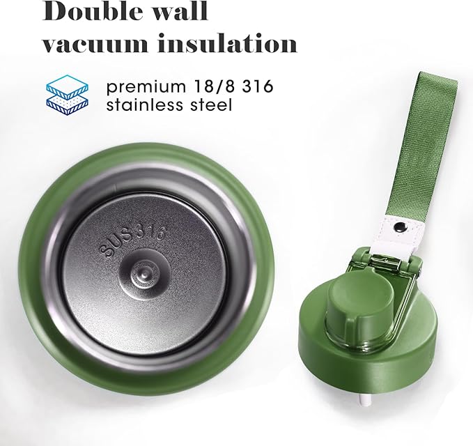 - 【Upgraded material - 316 stainless steel】316 stainless steel is further upgraded on the basis of 18/8 (304) stainless steel (controlling the proportion of impurities, adding molybdenum), corrosion prevention, acid and alkali resistance, high temperature resistance is stronger than 18/8 (304), therefore: all kinds of strong acid and alkali drinks (cola, coffee), this stainless steel water bottle can withstand. 316 stainless steel can better adapt to the environment where the temperature is too high or low, and it will not affect its corrosion resistance. Therefore: it is durable and will never leave a metallic taste or rust.